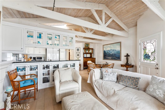This darling 2 bedroom, 1 bath upstairs back unit is located on the 100 block of Topaz, just a one minute walk away from the South Bayfront. ALL UTILITIES INCLUDED, strong WIFI, Smart TV with Netflix, Plus a monthly cleaning service, full furnished and ready to go! A shared washing and dryer unit are in the garage, plus storage room for 2 bikes. Remodeled in 2000, new wood floor installed in 2017, and an upgraded deck in 2024. please contact Shelly Angel 714.345.2801 to show.