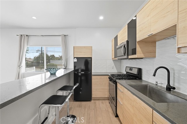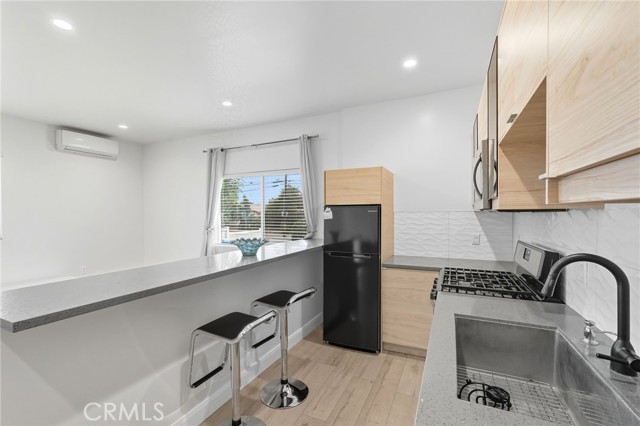 Charming and private, this 1-bedroom, 1-bath ADU is nestled in the heart of Granada Hills and offers its own separate entrance for ultimate privacy. Step inside to a cozy living room and dining area, highlighted by recessed lighting and sleek laminate flooring. The modern kitchen features quartz countertops, ample cabinetry, and a stylish backsplash. Comfort is ensured year-round with energy-efficient split AC units. The bedroom offers a peaceful retreat, and the updated bathroom is thoughtfully designed. A convenient in-unit washer and dryer adds practicality, while the private patio area provides a perfect outdoor space for relaxing.