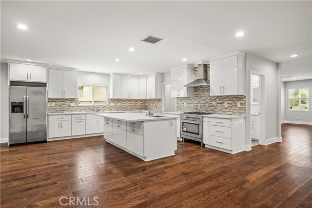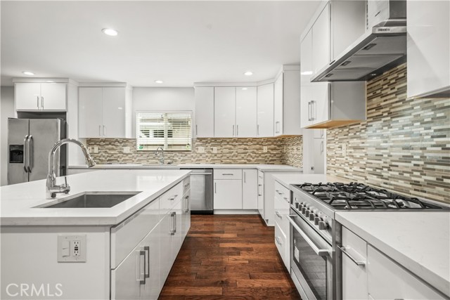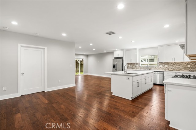 Come see this beautiful Encino Park home with a modern open concept floor plan. Step into the foyer which leads you to an open living area, dining area, then to the expansive center island cooks kitchen. Amazing glossy white soft close cabinets, Marble backsplash, smooth surface Quartz counters, stainless sinks & stainless appliances. Adjacent is a convenient walk-in pantry with loads of storage. Opposite is an open family room that accesses a spacious yard with a covered patio. There are 4 bedrooms 3 baths. One bedroom would make a great office with its double pocket doors and closet. The beautiful large master suite has a modern touch. A magnificent walk-in ceramic tiled shower, dual vanity with Quartz counters, plus a walk-in closet, recessed lighting, beautiful engineered hardwood floors, new custom moldings, New polished chrome fixtures, fully dry walled finished Direct access garage with New sectional door with auto opener and more. Easy access to the 101 freeway. Close to Ventura Blvd, Trader Joes, shop, restaurant and many more. This one won't last!