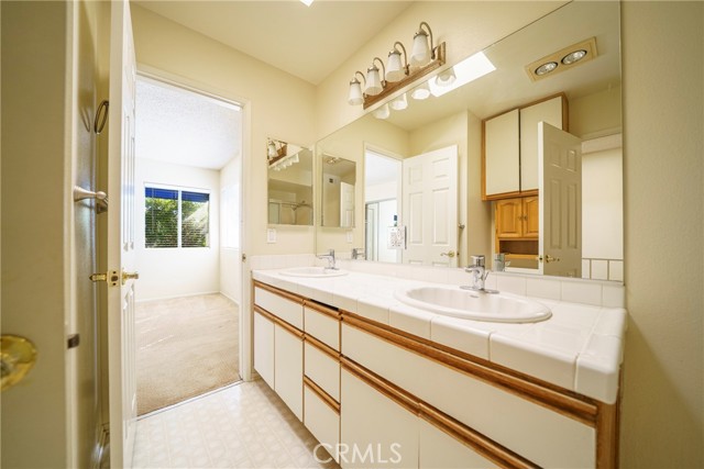 Quaint and delightful 2 bedroom, 1.5 bath townhouse in a gated community with a great floor plan. Features include newer laminate wood floors in living room with fireplace, carpet upstairs, skylight, dual sinks in primary bath, and updated kitchen with recessed lighting, built-in cabinetry, and opens to a private patio-ideal for entertaining or enjoying. In-unit washer, dryer, and refrigerator included. Community offers pool, spa, guest parking, and 2 assigned spaces. Located in award-winning school district!