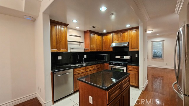 This beautiful Townhome is in a very private and quiet gated community and is conveniently located in one of Pasadena's most desirable neighborhoods. On the first floor, the living room with a high ceiling features a modern fireplace and it is adjacent to the kitchen. The gourmet kitchen features a black granite countertop and an island. The kitchen also has stainless steel appliances. Next to the kitchen is the dining room with glass French doors opening to the small backyard. The first floor also features a half bathroom with a sink and a toilet. The stacked laundry machines are in a closet on the first floor. Down to the steps the direct-accessed two-car garage is in there. The garage features an automatic garage door opener. On the upstairs, there are two good-sized bright and sunny bedroom suites each with their full bathrooms and two closets. The central Air Conditioning and Heating with Google Nest thermometer keeps the house comfortable. Laminate wood floors are throughout the home. This is truly a beautiful and comfortable home for everybody.