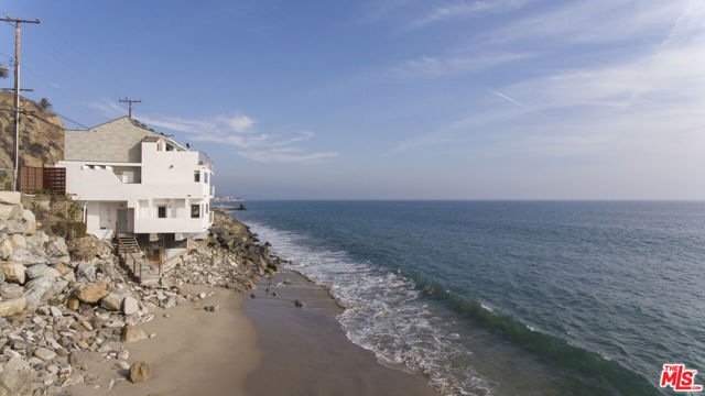 Nestled on the coveted east end of Malibu, this exquisitely remodeled beach house that comes fully furnished and fully stocked is a rare gem, offering a truly unparalleled living experience. Set against the backdrop of a serene, private sandy cove, this extraordinary property is the only residence in the area with no neighbors, ensuring total privacy and tranquility. The entry floor welcomes you into a sophisticated living space, showcasing impeccable finishes and a cozy fireplace. Expansive pocket sliding doors seamlessly blend the interior with the oceanfront patio, perfect for enjoying the stunning views. The adjacent dining room, with its captivating water vistas, leads to a chef's dream kitchen, adorned with high-end finishes and a striking floor-to-ceiling glass wine display.Upstairs, the master suite exudes luxury, complete with a beautifully designed bathroom featuring a freestanding tub and an expansive private deck with a built-in outdoor fireplace. A true sanctuary, this retreat offers a sense of serenity and unparalleled ocean views. The top floor also includes an additional bedroom, thoughtfully positioned to maximize the breathtaking views, and its own access to the vast deck.The lower level presents endless possibilities: a spacious second living room with a wet bar, a third bedroom directly on the water, and its own private oceanfront deck. This floor also offers the flexibility to serve as a separate studio, with its own entrance and a generous outdoor patio with panoramic ocean views.This beach house is one of Malibu's most unique and extraordinary opportunitiesa rare fusion of privacy, luxury, and exceptional design, all in one exceptional location.