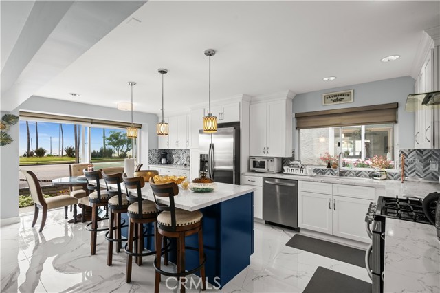 This stunning single-level, three-bedroom, two-bathroom unit stands out as one of the finest in the complex. Offering breathtaking panoramic ocean views encompassing Sunset Beach, Catalina Island, and the Palos Verdes Peninsula, it's a haven for those who appreciate coastal beauty. Step onto the open-air patio, accessible from both the kitchen and living room, and be captivated by spectacular sunsets. Situated just moments away from the sand, Seal Beach Pier, charming boutiques, and eateries, its prime old-town Seal Beach location epitomizes the ideal coastal lifestyle. Inside, the gourmet kitchen is a chef's delight, boasting new cabinets, countertops, Marble backsplash, appliances, and more, sure to impress even the most discerning guests. The living room exudes comfort and sophistication with custom flooring, an entertainment center, and a cozy fireplace, perfect for unwinding. High-quality finishes abound, including porcelain flooring, fresh paint, renovated bathrooms, custom blinds, built-in speakers, and more, enhancing both style and functionality. The fireplace adds a touch of warmth and ambiance to the space, creating an inviting atmosphere year-round. With an attached two-car garage offering private access and ample storage solutions, convenience is paramount. Accessible by stairs or elevator, this exceptional unit caters to various lifestyle needs, elevating its desirability even further. Don't miss out on this rare opportunity to indulge in coastal luxury at its finest!