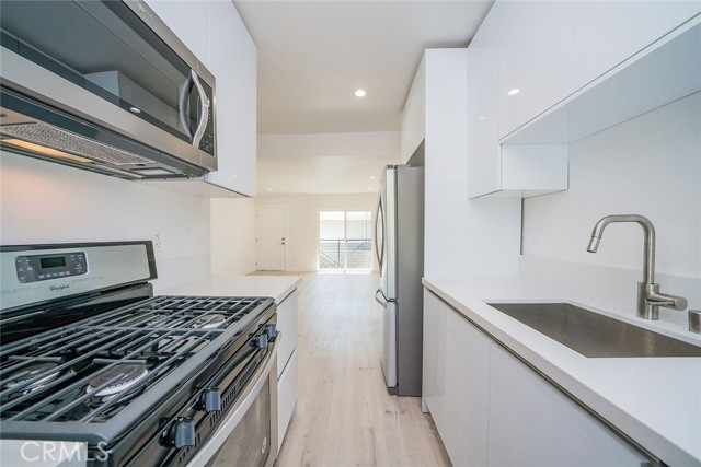 Come see this beautiful one bedroom apartment in the heart of North Hollywood. This unit comes with a fully equipped kitchen along with top of the line stainless steel appliances- microwave hood, stove dishwasher, French door refrigerator with water and ice maker. Modern laminate flooring throughout the living room, kitchen and bedrooms. Beautiful subway tile bathroom with modern finishes. Ductless air conditioning unit with heat and fan settings. 1 gated parking space is included in the lease. Security cameras are installed throughout the property for added safety. This property is conveniently located minutes away from the 170 & 101 freeways, NOHO Arts District, and NOHO West. Inquire today for more information.