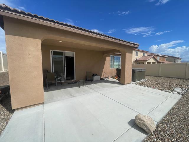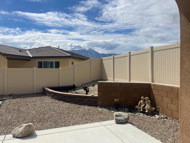 Welcome home this beautiful newer home development Skyborne by DR HORTON. These homes are tastefully upgraded with upgraded counters, shutters, tile and carpet flooring, appliances and tremendous lot views looking South at the San Jacinto's This home has tremendous value with SPA JACUZZI AND SOLAR supplement to utilities location proximity within the community and is close to Palm Springs, COD, and future shopping growth in the DHS corridor. Skyborne is situated in the gateway to the desert giving you easy access to the east valley, Yucca Valley or West to Riverside, LA and Orange Counties. This Development also features multiple large recreation Parks, pools with spas, BBQs, restrooms, showers and play parks.