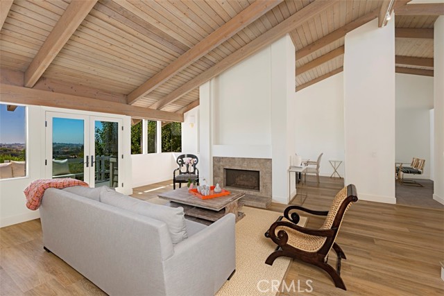 Gated community, beach close, Single loaded street on cul-de-sac. This beautiful Bi-level is a Chris Abel design over looking a beautiful park setting with no homes directly behind. There is a peek ocean view and a massive wrap around deck and plush vegetation. At entry, you have two choices, go up or down. Approx. 7 steps to living room, formal dining room, spacious wonderful kitchen with center island and new appliances. Then step up 4 steps to a computer center or den with sliding patio doors to small deck. Should you selecte to go down stairs, you will find two bedrooms and two baths with sliding patio doors to patio and yard. The Primary bedroom is super spacious with it's own fireplace and extremely large walk-in closet. The Primary bath offers walk-in shower, soaking tub and his and hers sinks. The Second bedroom has it's own bath with walk-in shower. There is a two car attached garage with a seperate laundry room. Owner just put in new gas furnace and central air. The community does offer a pool and spa. Custom light birch wood staircase, with matching color flooring throughout! All white kitchen with large center island, pantry and new appliances and eating area. This beauty offers tons of light throughout the home. BBQ grill on deck and beautiful area for relaxing and soaking in the sun. The ding room is spacious with alot of windows and patio door to deck. The living room offers lots of drama with wood beams and fireplace along with patio doors to deck.