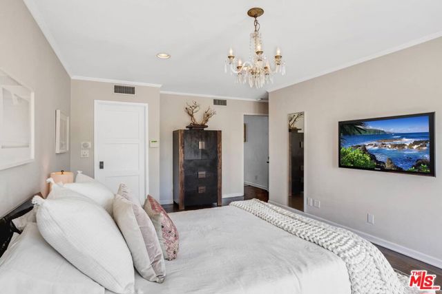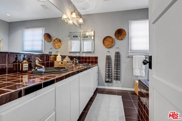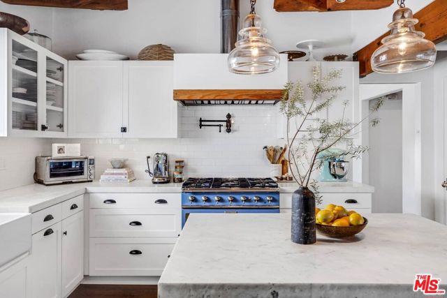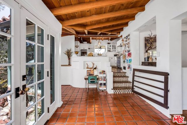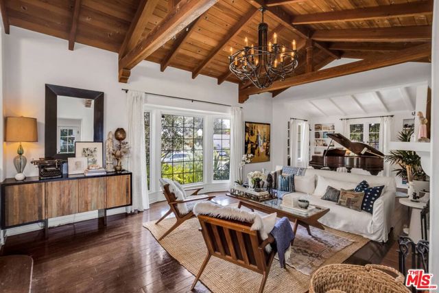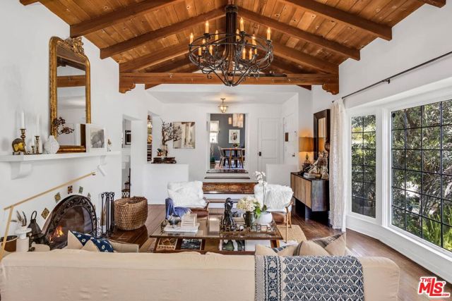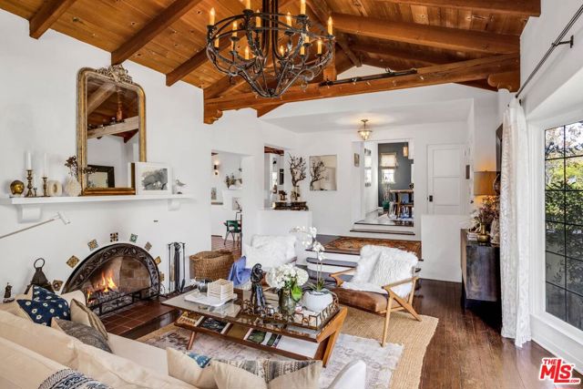 Partially Furnished. This vintage 1930s Spanish, sited on one of Westwood Hills' prettiest avenues, emanates warmth and meaningful character at every turn. Highly functional with its three bedrooms and three bathrooms, this soulful home will also surely enchant and retains its beautiful, original architectural details such as carved wood beams, colorful tile and wide-planked wood floors.A formal entry opens to a rich, vibrant living room graced by a vaulted, rustic, wood-beamed ceiling and a romantic fireplace. The library alcove has the original, inset bookcases. Also off the entry is a lovely formal dining room.The open, recently updated cook's kitchen has a vaulted, wood-beamed ceiling and all the upgrades---custom cabinetry with many built-ins, Carrara marble countertops, a work-station island, a farmhouse sink and the pice de rsistance, a La Cornue cooking range. There's a bar for casual dining overlooking a sun-soaked loggia which gracefully opens to the family room and to the backyard.On the main level find two bedrooms each with dedicated baths. Upstairs, there's a sunny primary suite with large closet space, a full bathroom and sweeping views across the wooded neighborhood. Outdoors, there is a large stone and brick patio, perfect for al fresco entertaining under the sun and stars. Beyond is an expansive grassy area with a vast kids play area and a lounging deck. The landscape is mature and lush. Currently, the two-car garage has been converted to a music studio. This special home is located in the coveted Warner Avenue School District and in close proximity to UCLA and to the fine shopping and dining in nearby Westwood and Brentwood Villages.