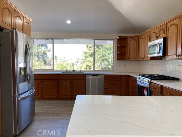 This lovely single level family home, located on an open view lot, on a cul-de-sac, close to a local charter school is ready for you. There are 4 spacious bedrooms, 2 1/2 bathrooms with a large living room and adjacent dining area. The family room is adjacent to the roomy kitchen which has a recent built-in refrigerator & micro, a brand new stove, dishwasher & quartz counter tops. The cabinets are natural stained cherry wood. The electrical and copper plumbing are changed throughout. 2 fireplaces accommodate the living room and family room. There are oversized sliding doors in the family & living rooms and master bedroom. There is a sky light in the entry and the living room has 3 of them in the vaulted ceiling up to the roof line-so open with its sliding doors and windows across the back of the room. There are recessed lights throughout the home and it is air conditioned. Both bathrooms have brand new double sinks, fixtures and lights and there is a half bathroom off the family room area. Flooring is wood look tile throughout. The over sized 2 car garage has a recent water heater and brand new washer & dryer. New sod will be installed upon occupancy. Beaches, shopping and freeway, toll road are close at hand. Pets will be screened.