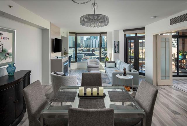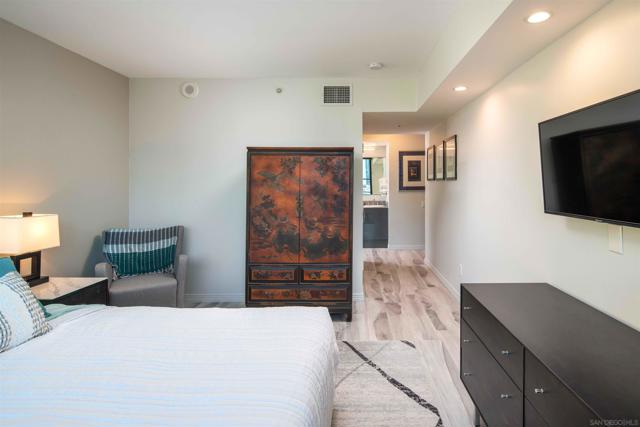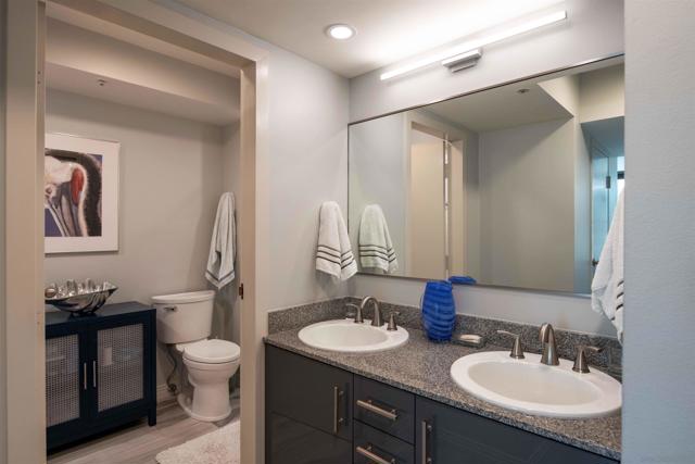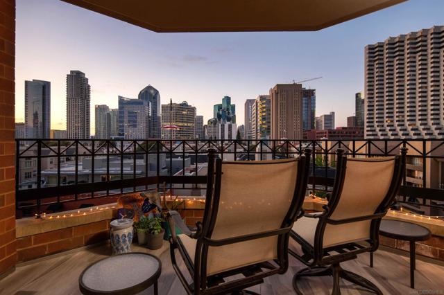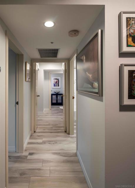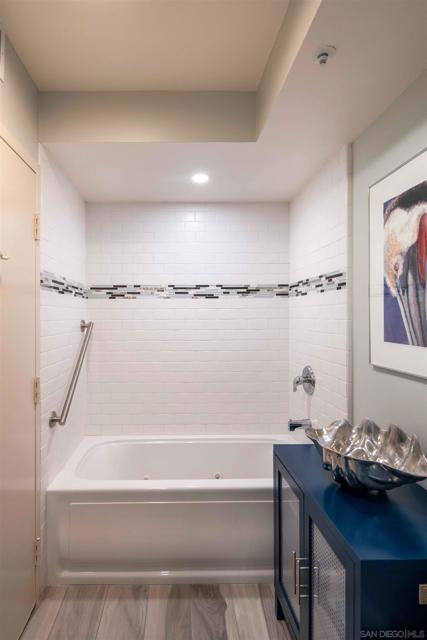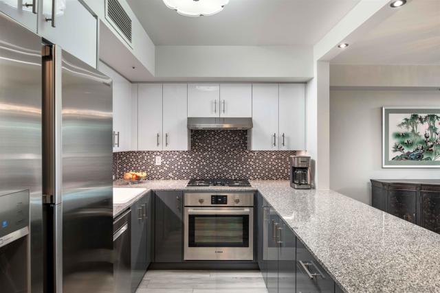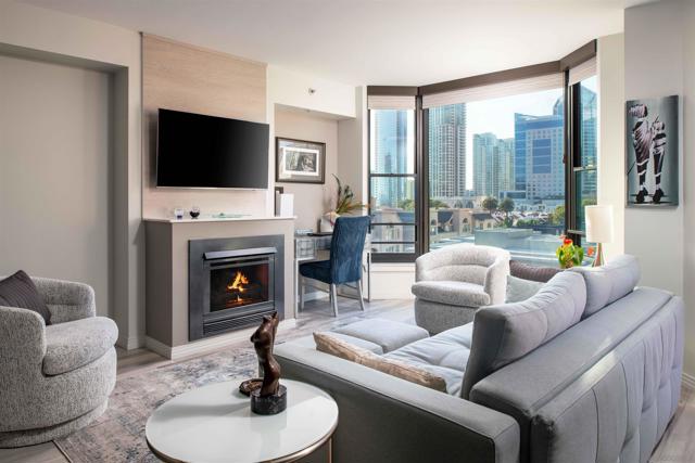 CITYFRONT TERRACE, Residence 805 ~ one of the most popular floorplans features expansive skyline views, dazzling by day or night - this home is richly detailed with fresh contemporary finishes throughout - porcelain plank flooring in coastal tones in found throughout the layout and continues to the covered balcony, custom cabinet fronts and updated Bosch and Samsung appliances, custom queen wall bed in BR2 provides maximum flexibility.... CITYFRONT TERRACE offers a wealth of amenities, all in a service-rich environment attended by a staff of 30+, in one of San Diego's most distinctive landmark communities - 2 pools, including a 75’ lap pool, jacuzzi, sauna, a 3500sf fitness and aerobics center, The Citrus Room – an entertainment salon with full catering kitchen, 24hr attended lobby, valet parking, on-site management, and more.....CITYFRONT TERRACE is majestically located on 2.3 manicured acres on the famed Harbor Drive corridor at the foot of Market Street, it's brick and limestone exterior presenting a timeless edifice of classic proportions.....
