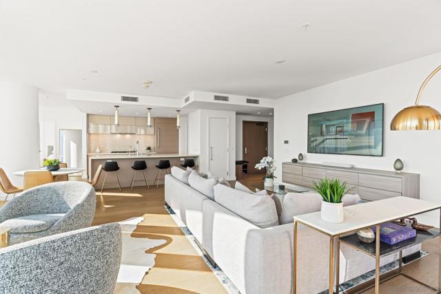 Experience resort-style living high above the San Diego waterfront in this stunning two-bedroom, two-bath residence at Pacific Gate, downtown’s most iconic luxury high-rise. Framed by walls of glass, this highly sought-after southwest corner floor plan captures panoramic views of the Pacific Ocean, San Diego Bay, Coronado Bridge, and the city skyline. Thoughtfully designed and upgraded, this home features custom built-ins throughout including a sleek living room media center, a bespoke walk-in closet and vanity in the primary suite, and a versatile office station with a pull-out Murphy bed in the guest room. The open-concept kitchen showcases top-of-the-line Wolf, Miele, and Sub-Zero appliances, complemented by rich finishes and designer details. Step onto your expansive private terrace and take in the breathtaking coastal vistas, perfect for morning coffee or evening sunsets. The split-bedroom layout provides optimal privacy and functionality, ideal for hosting guests or working from home. As a resident of Pacific Gate, you’ll enjoy an unparalleled collection of amenities including a private luxury boat share, car fleet, 24-hour concierge, guest suite, pool terrace with cabanas, state-of-the-art fitness center, residents lounge, screening room, and on-site restaurant. Live moments from the waterfront, Seaport Village, and the city’s finest dining and entertainment. The first all-glass Super Prime residential tower in San Diego offers an unprecedented waterfront lifestyle with sky-high amenities and picture-postcard views. Directly overlooking the waterfront, the 41-story tower contains an exclusive offering of homes designed by Hirsch Bedner Associates. Renowned New York-based architectural firm Kohn Pedersen Fox (KPF) created a landmark that reimaged the San Diego skyline. The custom-engineered glass walls dynamically reflect the hues of the sky and the Pacific Ocean. Pacific Gate has evolved the San Diego skyline and represents the future of the city. The building is comprised of two-nested curved glass towers that rise as a single column from a three-story ground floor retail podium on the north and west sides of the tower. Because of the building’s curves and exterior glass, Pacific Gate offers a striking viewing experience from every vantage point. Residents arrive home to a beautifully landscaped motor court with a private luxury car fleet, which leads to a double-height lobby with a 24-hour concierge and porter services. Two levels of amenities boast a residents lounge ideal for events and everyday use, the fitness center contains an extensive range of state-of-the-art equipment. Adjacent to the fitness center is the steam and sauna retreats that open up to the fourth-floor pool terrace fitted with poolside cabanas and glass surround.