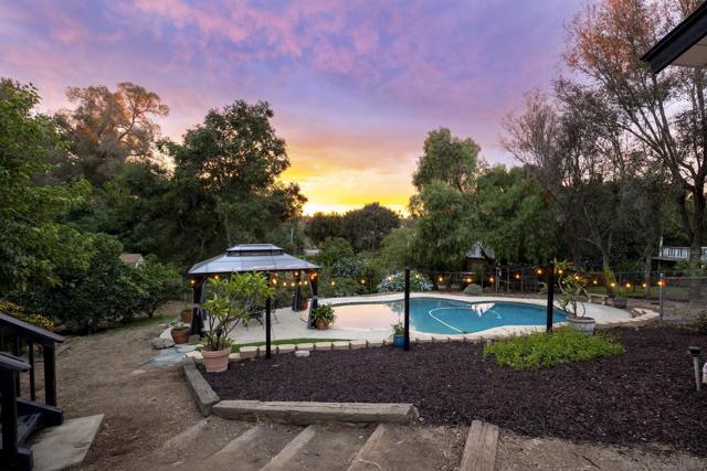 Welcome to this stunning, fully renovated Modern Farmhouse, offering 3 spacious bedrooms, 2 beautifully appointed bathrooms, and a versatile loft that can serve as a 4th bedroom, home office, or media space. Every inch of this home has been reimagined from top to bottom with high-end designer finishes, blending the warmth of farmhouse character with the sophistication of modern living. The primary suite is a true retreat, featuring a gorgeous ensuite 5-piece bathroom complete with a refinished 100-year-old cast iron clawfoot tub, walk-in shower, double vanity, and elegant finishes throughout. A bay window bench seat overlooks the sparkling pool and backyard oasis, offering peaceful views and an inviting place to unwind. Situated on a fully usable 1-acre lot, the property is designed for both comfort and entertainment. The outdoor space boasts a newly refinished PebbleTec pool, charming gazebo, freshly built retaining walls, and a lush artificial turf lounge area ideal for gatherings or relaxing under spectacular sunset skies. The rear of the property features a large Tuff Shed and multiple garden areas, making it a dream come true for any green thumb or hobbyist. A detached two-car garage includes an additional workshop space, providing flexibility for a home business, studio, or potential future ADU conversion. This property perfectly combines space, sophistication, and serenity, delivering the quintessential indoor-outdoor Southern California lifestyle.