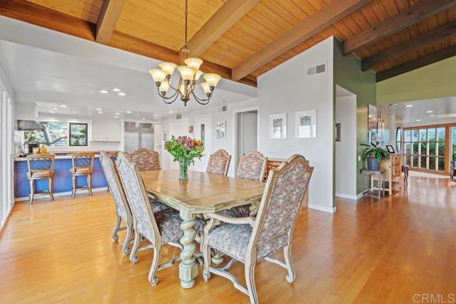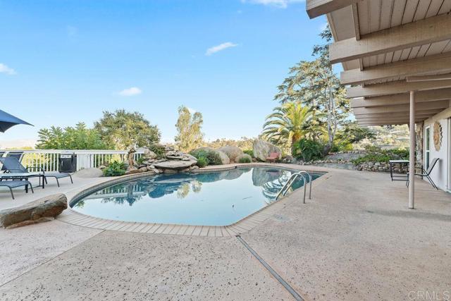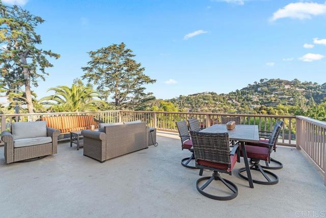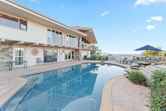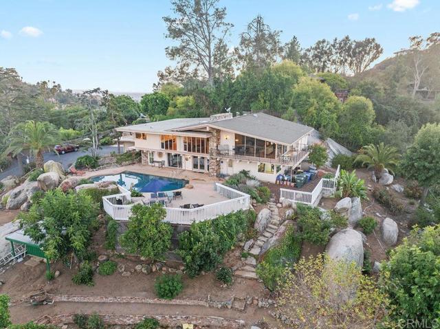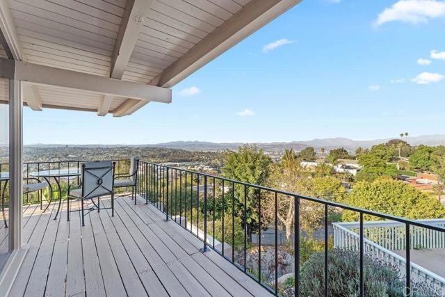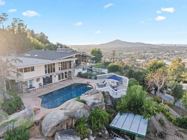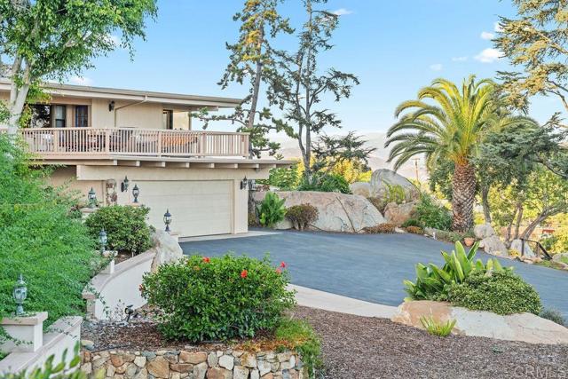 Nestled among 1.10 acres of mature fruit trees, this beautiful home enjoys one of the most fantastic panoramas Mount Helix has to offer. Delight in the view outside from the spacious sun deck or inside through the floor-to-ceiling windows. Luxury features abound inside and out of this unique home, including cedar beam ceilings in the living room, dining room, and family room, large built-in wardrobes, a spacious kitchen with Sub-Zero refrigerator, a water feature off the master bedroom and bath, and skylights that brighten the interior.