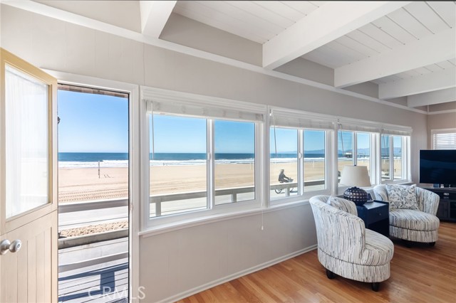 Welcome to the beachfront home of your dreams. This South Manhattan Beach Strand home is available fully furnished for lease, offering the ultimate South Bay beach lifestyle. With unobstructed ocean views and direct beach access, you’ll enjoy front-row sunsets every evening. This beautifully maintained home features 3 spacious bedrooms and 3 bathrooms within an open, light-filled floor plan designed to highlight the coastal setting. The main living area boasts expansive windows overlooking the sand and surf, a cozy fireplace, and seamless indoor-outdoor flow to the oceanfront patio—perfect for relaxing or entertaining. An elevated dining room enhances every meal with sweeping ocean vistas. The modern kitchen includes stainless steel appliances, ample storage, and a charming built-in breakfast nook. Upstairs, the primary suite offers panoramic views, a fireplace, and a spa-inspired bathroom. Two additional bedrooms on the main level provide comfort and flexibility for family, guests, or a home office. A private courtyard creates an additional outdoor retreat for dining or lounging. Additional highlights include hardwood floors, in-unit laundry, a two-car garage, and a prime location just five blocks from the dining, shopping, and nightlife of downtown Manhattan Beach.