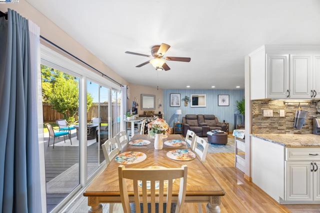 Take a stroll through this home that offers you so much in the way of comfort, space and modern appeal. The home features a family room with a 4th bedroom or an office. Tax record says 3 bedrooms but it has 4. A living room. A dining room. 4 bedrooms and 2 updated bathrooms with tile shower enclosures and tile floors and new vanities and lights. A kitchen that boast granite counters, antique white maple cabinets with soft close, tile backsplash, ss appliances, gas range, 2 ovens, built in microwave, under cabinet lights. Laminate and tile floors throughout. Enormous resort style backyard with a large Trex deck, spacious turf play area w/eco-friendly drainage system, hot tub, covered patio, fruit trees and a huge enclosed storage area. Perfect for playing, entertaining or just relaxing. Dual pane windows with a 12’ patio door. Court location. Great schools. Mattos Elem., Walters Middle, Kennedy HS. OH 10/25 and 10/26 1-4.