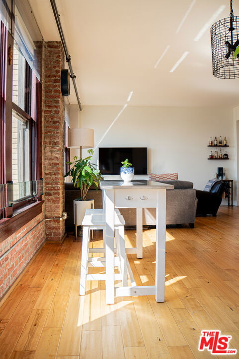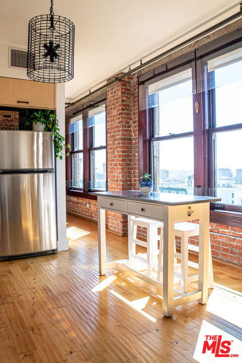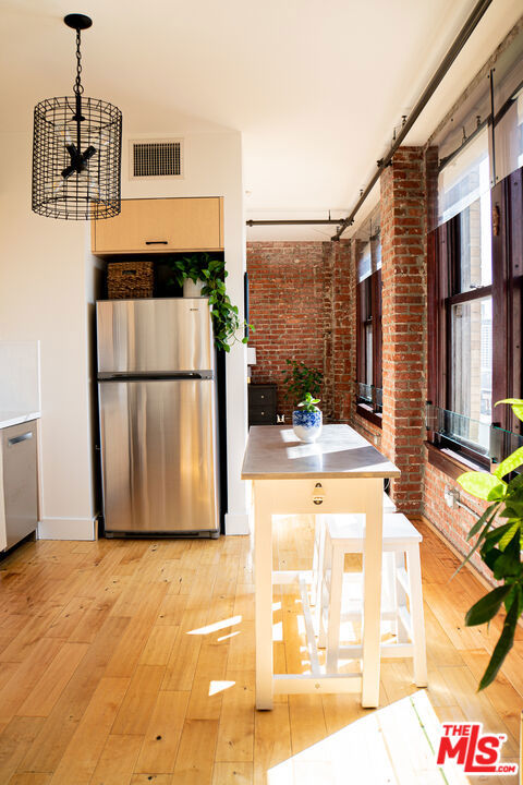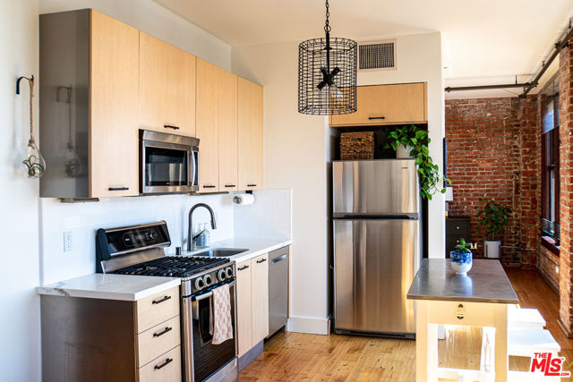 Gorgeous Updated Loft with Panoramic City Views! This is an incredible opportunity to lease a contemporary loft in The Rowan Building, the crown jewel of Downtown LA's Historic Core. Unit 1102 is a spacious 1 bed / 1 bath condo with an open, modern loft layout. The interior tastefully blends historic character with modern finishes and comforts, including hardwood floors, soaring ceilings, custom Scavolini cabinetry, updated countertop and backsplash, high-end stainless appliances, in-unit W/D, and central heat and AC with smart thermostat. The enormous full bath features stone tile, granite counters, and an extra-deep soaking tub. A wall of huge, mahogany-framed windows brings in an abundance of natural light to the unit and opens to an expansive view that stretches from DTLA all the way to the mountains! Originally built in 1912, the historic Rowan Building was designed by famed LA architects Parkinson & Bergstrom in the iconic Beaux-Arts style. In 2009, the building was extensively restored and converted into live-work condominiums. Historic details have been preserved including exposed brick walls, Carrara marble corridors, and Art Deco elevator doors. The property boasts countless amenities including 24/7 security and concierge, bike storage, and a resident lounge. Perfectly-manicured outdoor spaces include a lush tropical garden, pet relief area, hot and cold plunge pools, outdoor seating with fire pits, and built-in gas BBQs. The Rowan is perfectly situated within the vibrant Historic Core neighborhood: adjacent to Spring Street Park, two blocks from the Pershing Square Metro, and surrounded by the countless restaurants, culture, transportation and nightlife options to compliment the perfect downtown lifestyle. This is the DTLA lease opportunity that you have been looking for! Showing by appointment. Tenant pays Electric and Cable/Internet. Parking and storage available for an additional fee.