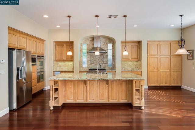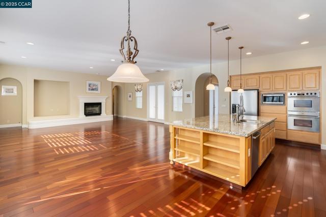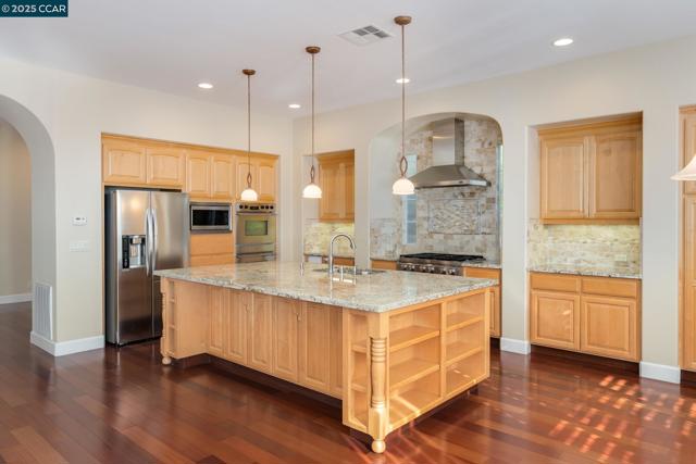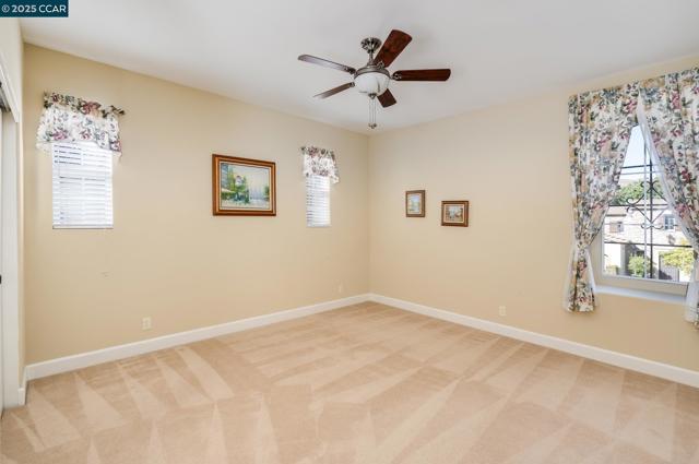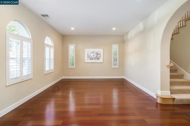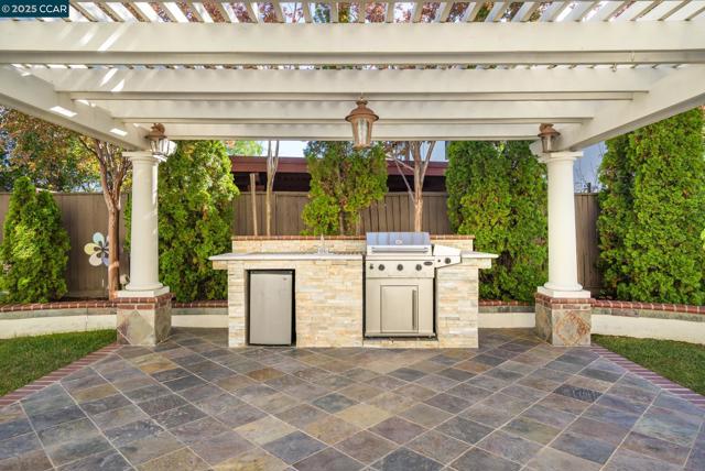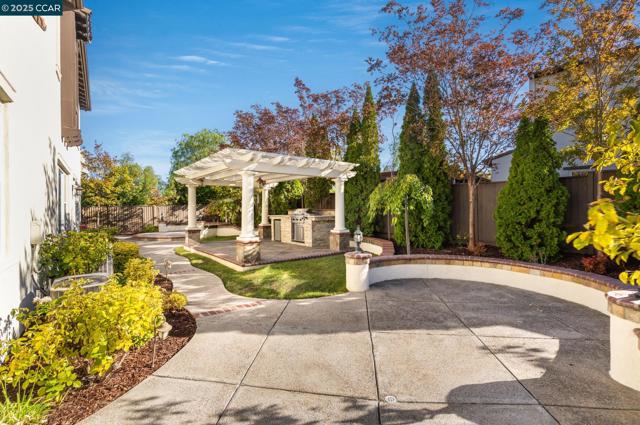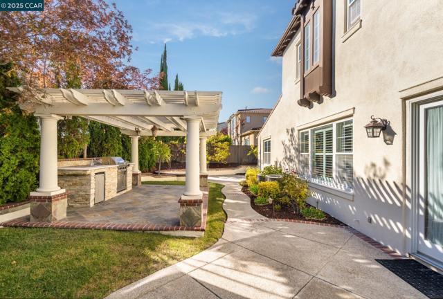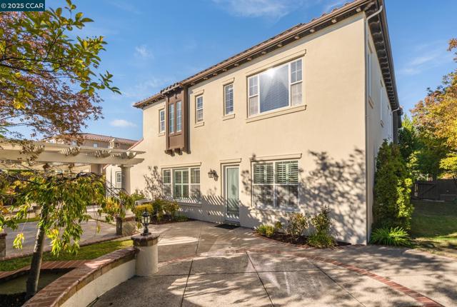 Stunning home located in the sought-after Gale Ranch neighborhood. This home offers a desirable floor plan, including two full bedrooms and 1.5 bathrooms downstairs. The main level features a formal living room and dining room, along with a spacious kitchen that opens to the family room. The well-equipped kitchen boasts an oversized center island, bar seating, and a cozy dining nook. The family room includes a fireplace and provides access to a central courtyard. Upstairs, you'll find three additional spacious bedrooms, a Jack & Jill bathroom, and a versatile mini-loft, perfect for a kids' workspace or a library. The primary suite is a true retreat with two walk-in closets, dual sinks, soaking tub, separate shower, & ample cabinet space. The outdoor space is equally impressive, featuring low-maintenance landscaping, privacy, a patio, and a built-in BBQ kitchen, perfect for outdoor entertaining. The home also includes owned solar panels and a three-car garage. Its prime location offers proximity to parks, open spaces, and trails, and it's close to top-rated public schools. You'll also have easy access to freeways, shopping, dining, and the downtown San Ramon City Center.