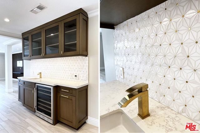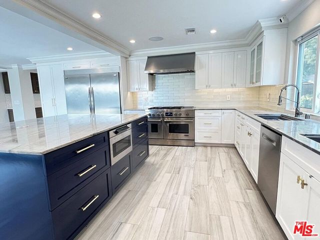 Welcome to easy living in Chatsworth! Fully remodeled in 2021, this home is located in a quiet pocket of the valley on a cul-de-sac. Three car garage, EV charging for two vehicles, and additional driveway parking.The kitchen has stainless steel appliances (2 ranges, 3 ovens, 2 sinks, 72" fridge & freezer, and drawer microwave) and quartz counters. The kitchen is open to a family room area with TV wall, while the separate formal living room features a fireplace and the dining room features a built-in bar and wine fridge. Multiple sliders open to the outdoor entertaining area. Ground floor bedroom with its own bathroom (with walk-in shower) is located near the front entrance. The laundry room is on the ground floor. In the upstairs loft area you'll find a screening/movie room with projector and an office/homework nook around the corner. Massive primary suite, including a private balcony, walk-in closet and makeup/hair area. The en-suite bath features a soaking tub, large walk-in shower, dual sink vanity, and separate water closet with toilet and bidet. Three additional bedrooms are located on the second floor. The large backyard features a saltwater pool, spa, sauna, outdoor shower and outdoor kitchen. Covered patio with outdoor TV. The neighborhood is a welcoming and friendly community. Conveniently located near Sierra Canyon School, the shops, restaurants and movie theaters at The Vineyards at Porter Ranch, Whole Foods,Trader Joes, Ralphs, Mendocino Farms, Ulta and 118 freeway access are all just a 5 minute drive away. Please note, there are additional maintenance fees as follows:Pool Maintenance is $160/month, Landscape is $120/month, Alarm system is $95/month, Solar lease is $125/month TOTAL MAINTENANCE COSTS: $500