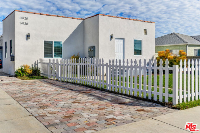 Welcome to this move in ready Spanish-style home for lease in Lawndale. This is the front unit of a fully detached duplex that shares no walls with the other unit. This 2-bedroom, 1-bathroom gem offers 732 sq. ft. of comfortable living space as it features beautiful hardwood floors throughout, a spacious primary bedroom, a remodeled kitchen and bathroom, in unit laundry, parking, and A/C. The kitchen features brand new appliances and offers an abundant amount of storage space, making it as functional as it is stylish. Adjacent to the kitchen is where you'll find the in unit laundry with a brand new washer and dryer. The bathroom offers a large vanity as well as a tub shower combo. Both bedrooms feature mirrored closet doors and are bathed in natural light. Step outside to your large private fenced front yard, perfect for relaxing or entertaining. There's also one off-street parking space in the driveway dedicated to the unit. Located just 15 minutes to the beach, 8 minutes to Manhattan Village, and 3 minutes to the freeway, this home puts you close to everything the South Bay has to offer.