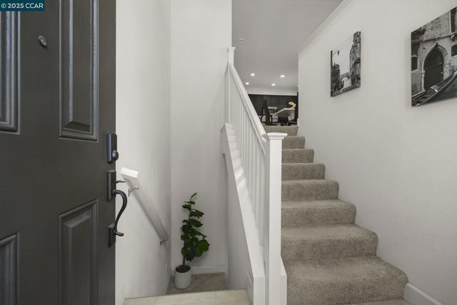 Welcome to this pristine 3-bedroom + den, 2-bath townhome offering 1,456 sq. ft. of comfortable living in the heart of Newark! Lightly lived in and in builder-provided condition, this home feels nearly brand new. The open-concept design creates a bright, airy feel that’s perfect for both daily living and entertaining with abundant natural light. A private balcony with serene sunrise views adds a peaceful retreat to your day. The chef-inspired kitchen is equipped with white shaker cabinetry, a modern mosaic tile backsplash, high-end stainless steel appliances, and an oversized island that doubles as a breakfast bar. Unlike many homes, the kitchen and dining areas feature elegant tile flooring, ensuring both style and durability. With three spacious bedrooms plus a den, this home offers flexibility for a home office, study, or guest space. The community is beautifully maintained and ideally located, AMC, Costco, parks, shopping, Dumbarton Bridge, I-880, and major tech campuses. Don’t miss the opportunity to call this stunning property your next home!