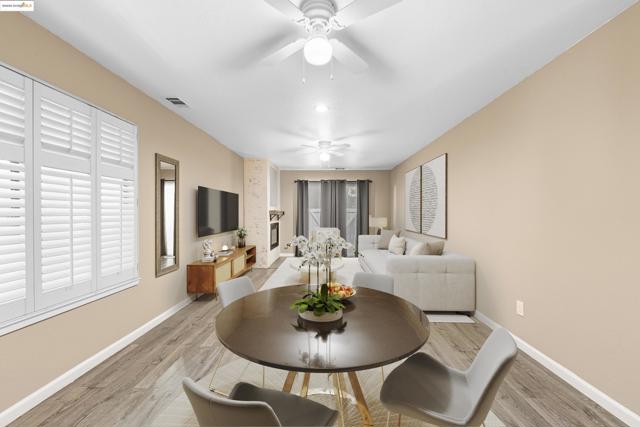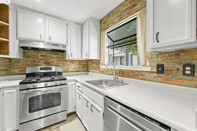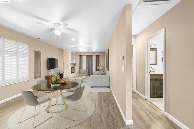 Discover this private one-story end unit, tucked away at the back of a beautifully maintained complex. Filled with natural light, the home features an inviting open layout, a tiled fireplace, and a convenient in-unit laundry room. Step outside to a peaceful patio with a serene tree-lined backdrop or enjoy a dip in the community pool. The unit comes with a parking spot and detached garage. Enjoy the best of both worlds—easy access to Hwy 12 while still enjoying quiet, private living. Property virtually staged.