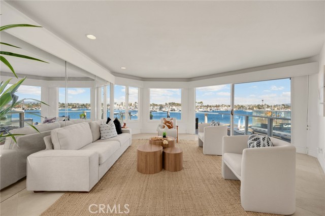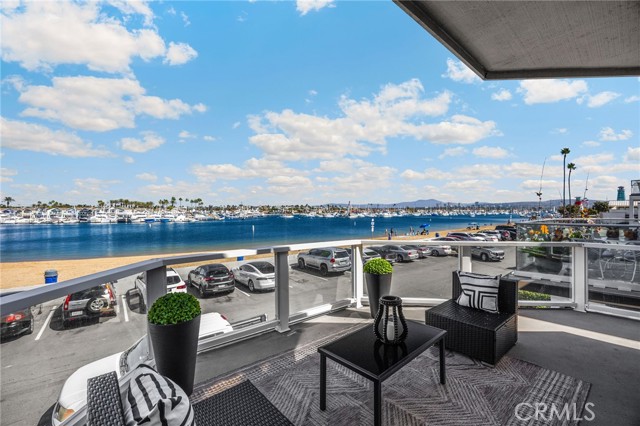 Rare opportunity under $3 million on Balboa popular peninsula located beachfront with spectacular view of Newport Bay. Located next to a public dock, the Marina, Marina Park, playground, and community center. Enter to expansive living room with patio deck, fireplace and formal dining area both with unobstructed view of the water. Gourmet kitchen boasts 5 burner cook top, double oven, island for entertaining and a large pantry. Downstairs powder room. Move upstairs to the king and queens salon with fireplace, the best veiw of the water on the pennisula a large walk-in closet, tub and separate shower. Upstairs laundry. Down the hallway to bedroom number two and bathroom with double sinks. Next is an expanive bedroom 3, perfect for guest quarters, in-laws or party/bonus room. Two car tandem garage with alley access and direct access to the kitchen. This is on the top two levels of a 2 condo building yielding the most privacy and amazing views. Walk to the ocean, pier and numerous retaurants and shops.