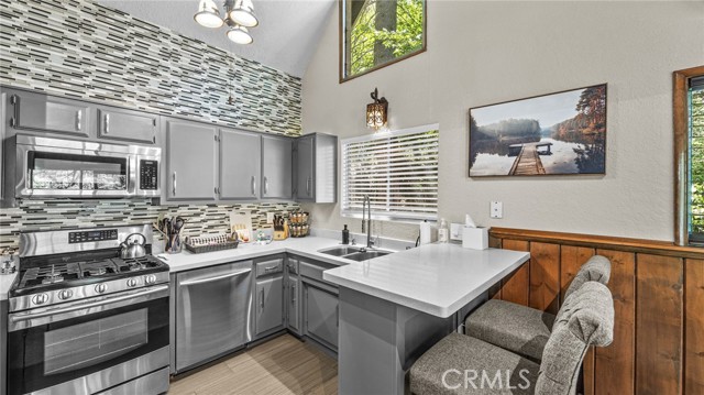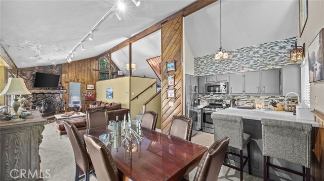 MOTIVATED SELLER! Welcome to your dream cabin in the desirable Arrowhead Villas! This charming 3-bedroom, 2-bath home is nestled on a downslope side of the mountain, surrounded by acres of protected natural forest. Enjoy easy entry-level access and level parking for 3 cars on a newly updated parking deck. Step inside to find vaulted ceilings and a large stone fireplace in the living room, perfect for cozy nights. The recently updated kitchen boasts stainless steel appliances and an eat-at bar area. Two sliding glass doors lead outside to a deck that runs the full length of the house, perfect for enjoying the beautiful forest views. A secret loft/game room provides a fun hideaway for kids. The home also features a convenient laundry area with a washer and dryer, and dual-zoned heating and air conditioning for year-round comfort. Enjoy stunning forest views and abundant wildlife from your backyard, complete with a seasonal stream. The west-facing position ensures spectacular sunsets. The roof has been recently inspected for your peace of mind. Blueprints are available at no cost for adding a 4th bedroom with a bath and additional decking, offering plenty of room to expand. Sold with all furniture and appliances, this cabin is move-in ready. With county-plowed roads in the winter, you’ll have easy access year-round. Located close to Lake Arrowhead Village and Santa's Skypark Village, and with quick access to Rim Highway 18. Don’t miss this opportunity – schedule a showing today!