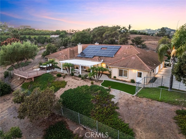 Tucked away in the rolling hills of Bonsall, this stunning, private gated estate where charm, comfort, and California living come together effortlessly. This elegant, custom-built 4-bedroom, 3.5-bath home offers panoramic views, high ceilings, timeless shutters, and a bright, freshly painted interior with newer flooring in the living room. The gourmet kitchen features granite countertops, a large island with a salad sink, a built-in GE Monogram refrigerator, and all high-end appliances included, making entertaining or everyday living a breeze. The master suite offers fabulous views, private patio access, a walk-in closet with built-in dresser, and a covered patio with a spa—providing the ultimate retreat at home. Every detail has been thoughtfully maintained, from the recently serviced roof and newly installed AC units to the modern water heater, water softener system, and efficient solar panels. Outside, relax under the stars on manicured, low-maintenance grounds, or enjoy the usable land perfect for horses or an arena. Parking and storage are effortless in the four-car garage with epoxy flooring and off-the-floor cabinets. Beyond the property, enjoy the serene, scenic hills of Bonsall with easy access to Highway 76, nearby hiking trails, golf courses, wineries, and a relaxed, family-friendly community. This is a rare turnkey estate that perfectly blends elegance, utility, and breathtaking natural beauty, schedule a private viewing and fall in love with your Bonsall masterpiece.