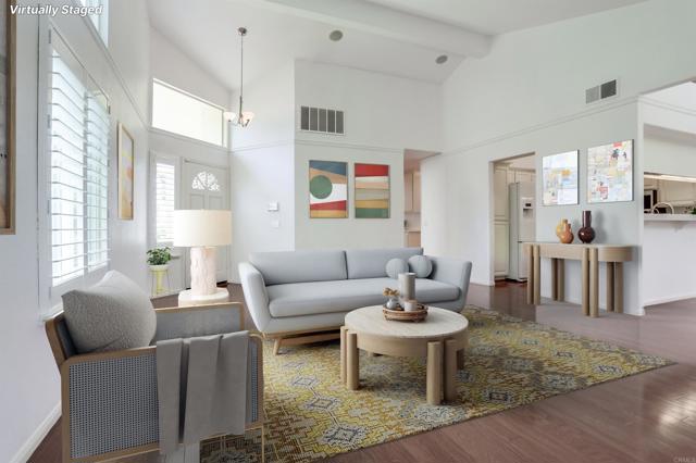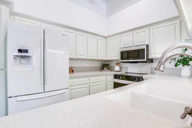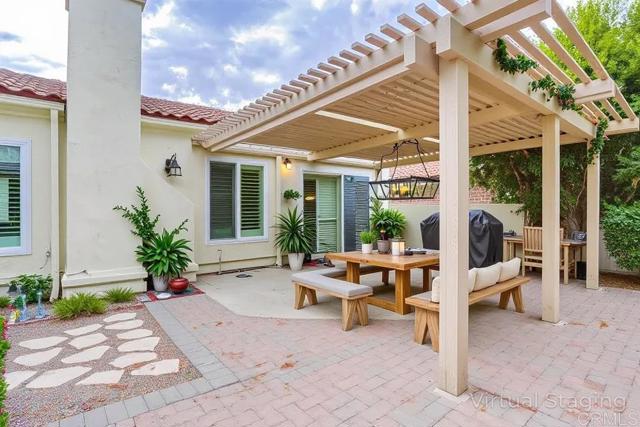 Welcome to this move in ready 3-bedroom, 2-bath single-family home in one of North Escondido’s most serene neighborhoods. The backyard opens to tree-lined fairways at Castle Creek Golf Course, offering peaceful views and beautiful sunsets. Inside, an open floor plan with soaring ceilings and oversized windows fills the home with natural light. The living room features a cozy fireplace and sliding doors that extend to a private backyard, ideal for relaxing or entertaining. The updated kitchen includes quartz counters, under-cabinet lighting, a breakfast bar, and a large pantry with pull-out shelves. A brand-new electric range, microwave, washer, and dryer are included. Additional upgrades include central AC with a Nest thermostat, keyless front entry, and a video doorbell. The spacious primary suite offers a private patio, double sinks, and a new walk-in tiled shower. Two additional bedrooms provide flexible space for family, guests, or a home office. Enjoy the quiet of country living with easy access to I-15, shopping, dining, and just 30 minutes to the beach. Community amenities include a sparkling pool. FHA and VA financing welcome.