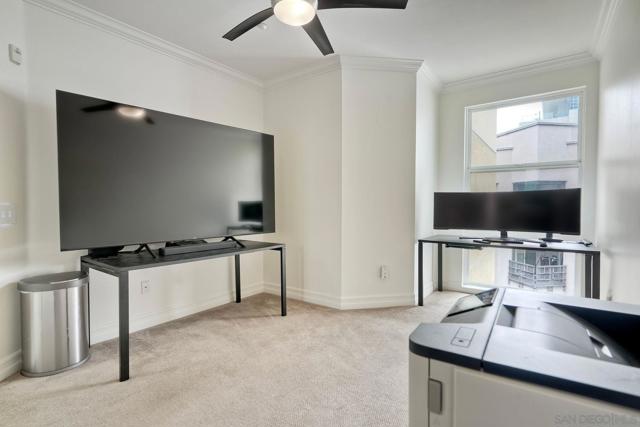 Discover urban living at its finest in this stunning top-floor 2-bed / 2 bath UNFURNISHED condo at Park Blvd East, offering 1,077 sq ft of light-filled space in the heart of East Village. Features include a modern kitchen with quartz countertops and a mini subway tile backsplash, updated bathrooms, sleek new finishes throughout, and a rare private rooftop deck — perfect for entertaining. The unit comes with two side-by-side parking spaces, a storage locker, and in-unit laundry. At Park Blvd East, enjoy building amenities such as a landscaped courtyard, on-site spa area, secure entry, underground parking, and bike storage — all within steps of restaurants, cultural spots, and downtown attractions. Live where city life meets comfort — this penthouse condo is a rare gem in San Diego's dynamic East Village.