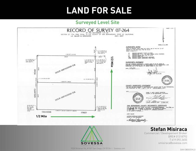 160 Acres of commercial land. This site located in the path of growth 2 miles to the north of SCLA and has several factors making this a desirable strategic asset that will appreciate well into the future. Goldman Sachs Renewable Power has acquired 670 acres for a 100MW solar PV plant with a 50MW battery storage facility currently under operation. The property is in the County of San Bernardino near the city of Adelanto ADD Airport Development District, allowing for a wide range of non-residential uses, generally encompassing light and heavy industrial, retail, office and other commercial uses that are oriented around airport operation, services, industries, and businesses.