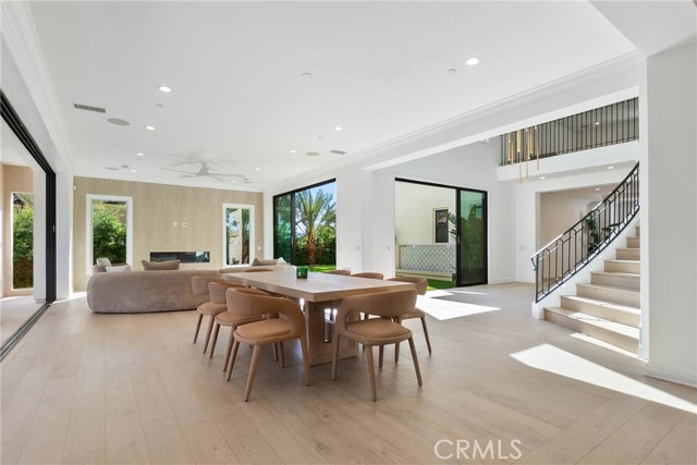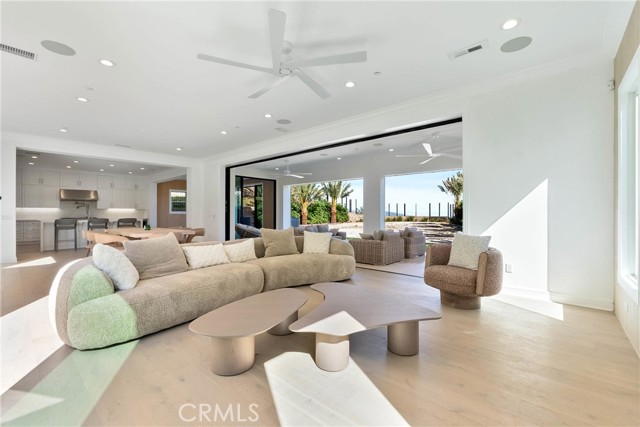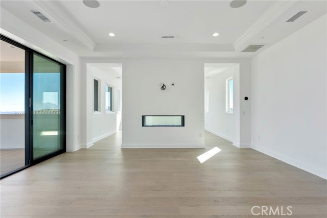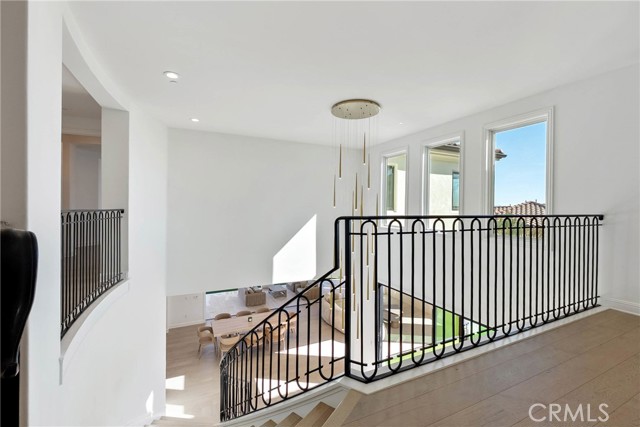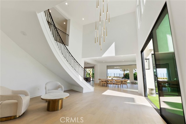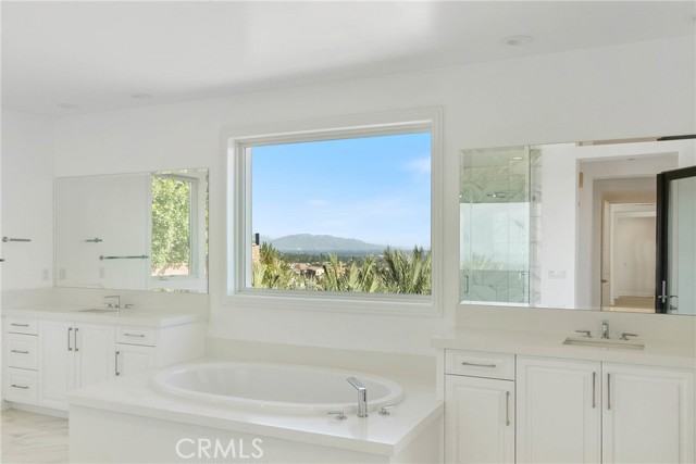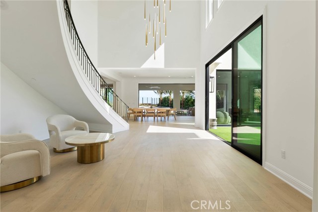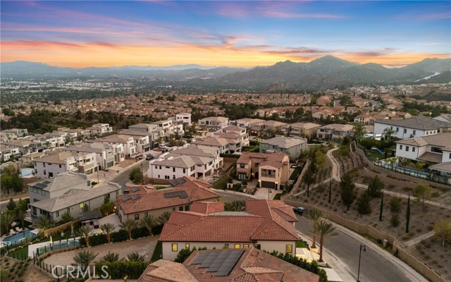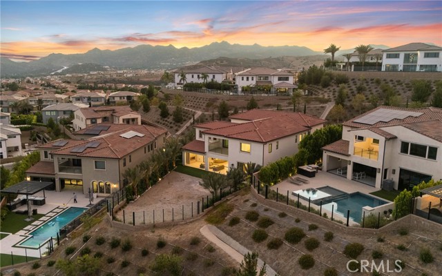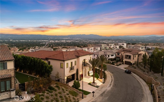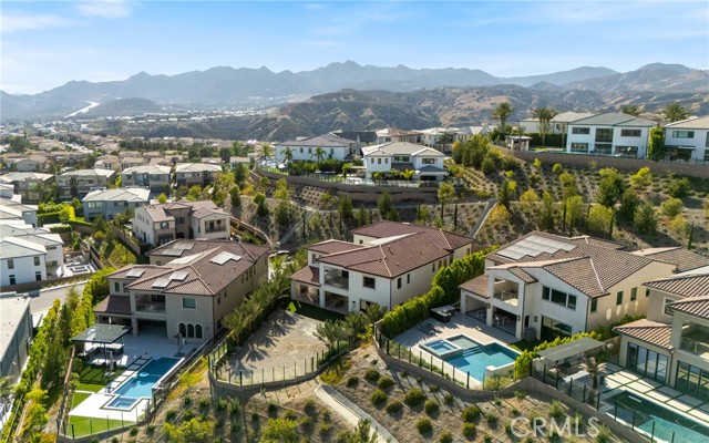 Experience luxury living in this original Palisades model home in the prestigious gated community of Westcliffe at Porter Ranch. Completed in 2021, this 5-bedroom, 6-bathroom residence sits on a rare 14,142 sq. ft. flat lot and offers some of the most breathtaking, unobstructed city and mountain views in the community. From the moment you arrive, the home impresses with Italian stonework across the driveway and entry, illuminated step lighting, and tranquil water features that set a sophisticated tone. Inside, a grand foyer with soaring ceilings and a designer chandelier frames the dramatic floating staircase and European oak hardwood floors. The open-concept design connects a spacious dining area to a chef’s kitchen with an oversized waterfall island, Sub-Zero refrigerator, Wolf appliances, Wolf coffee system, pot filler, and walk-in pantry. A sleek linear fireplace anchors the great room, while 20’ x 8’ glass pocket doors extend the living space outdoors for seamless entertaining. Upstairs, a loft-style family room separates each wing. The primary retreat serves as a true sanctuary, complete with a private balcony overlooking the San Fernando Valley, a spa-inspired bathroom with Calacatta marble counters, dual vanities, soaking tub, walk-in shower, and an oversized custom closet. Three additional en-suite bedrooms, each with large closets, complete the upper level. The backyard is both functional and inspiring, designed with brand-new turf, a covered patio with fireplace, and plenty of flat space for a pool, spa, outdoor kitchen, and more. Permitted pool plans with renderings are already in place for the next owner to create their dream outdoor oasis. Additional highlights include surround sound throughout, solar panels that are fully paid off, and a direct-access 3-car garage. This residence combines timeless Palisades craftsmanship with today’s modern comforts, a rare opportunity to own one of Porter Ranch’s most desirable homes with head-on city and mountain views.