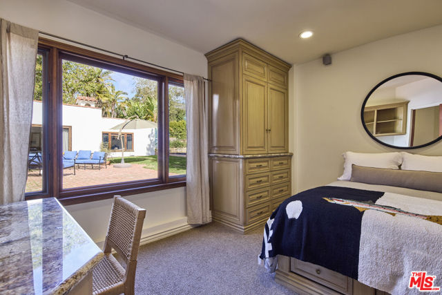 This magical 1.3-acre Spanish-style estate offers a serene escape in Ramirez Canyon, one of Malibu's most private, gated communities. Nestled amongst majestic oak trees and a babbling creek, this hidden gem provides unmatched tranquility just minutes from Paradise Cove Beach. The single-story home features a grand formal living room with vaulted ceilings and a cozy fireplace, flowing seamlessly into a gourmet kitchen with a spacious island and dining area with an additional fireplace. The primary suite boasts three closets and two beautifully appointed bathrooms, one with a steam shower and the other with a clawfoot tub beside a fireplace for relaxation. Three additional bedrooms and two flexible spaces accommodate a variety of lifestyle needs. Expansive windows throughout the home showcase manicured grounds, a private citrus orchard, and multiple entertaining areas, including a large patio, flat grassy lawns, a pool, spa, and a newly built glass-and-steel greenhouse. As a valuable bonus, the home is equipped with a full-house generator, ensuring uninterrupted comfort. This estate offers the perfect balance of seclusion and convenience - a rare opportunity in Ramirez Canyon.