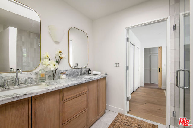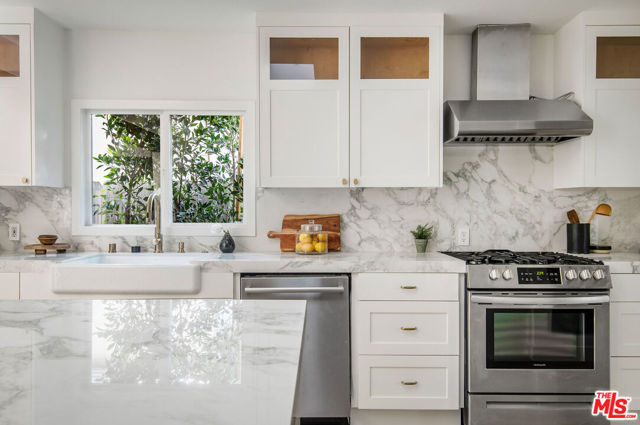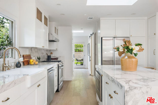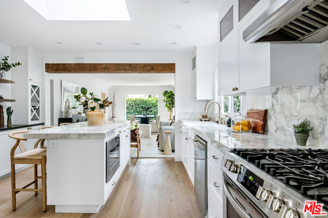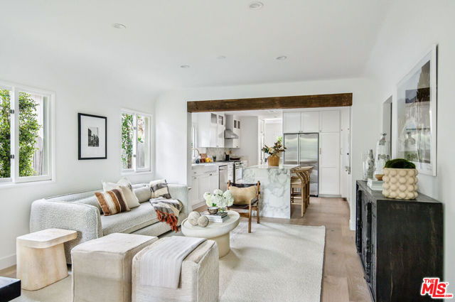 Discover unparalleled sophistication and convenience at 8717 Dorrington Ave, nestled south of Melrose in the prestigious West Hollywood West community. This recently renovated residence spans approx 1,800 sqft on a generous 4,800 sqft lot, featuring three bedrooms plus a detached flex space. Enter through a private, fully-enclosed gateway leading to a charming pathway and off street parking for four plus cars. The interior boasts an expansive open floor-plan, accentuated by a large picture window and skylights that floods the living spaces, enhancing the seamless flow between the family room, dining area, and outdoor spaces. The state of the art chefs kitchen is equipped with a dramatic backsplash, cascading island, and is perfect for entertaining and everyday living. The home's ambiance is enriched by all new european wide plank flooring, chic design elements and over $300,000 in recent upgrades. The primary suite offers a luxurious retreat, complete with a newly designed bathroom and ample closet space. Two additional bedrooms provide comfort and privacy for family and guests, while the detached bonus room is ideal for a home office, gym, or studio. The outdoor area has room for a pool and includes a private yard with mature landscaping, and multiple lounge areas perfect for relaxation and gatherings. Enjoy exceptional walkability with proximity to the trendy Melrose Design District, world-class shopping, restaurants, cafes, and located just minutes from Cedars-Siani and Beverly Hills.