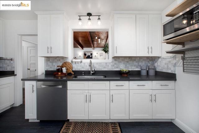 Located in Richmond's NE neighborhood, this bungalow offers 2 bedrooms, 2 baths, and two living areas. The main living room includes a Regency fireplace, and the family room opens to a new deck and landscaped yard. The kitchen features shaker cabinets, quartz counters, and stainless appliances. Upgrades and features include copper plumbing, heat pump HVAC, EV charger, smart leak detection, new windows, doors, and fencing. Near Del Norte BART, Target, Catahoula Coffee, and Solano Playlot. See it for yourself this Sat-Sun from 12-4pm