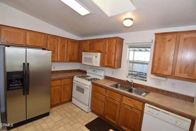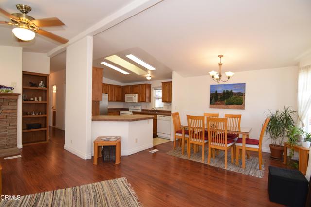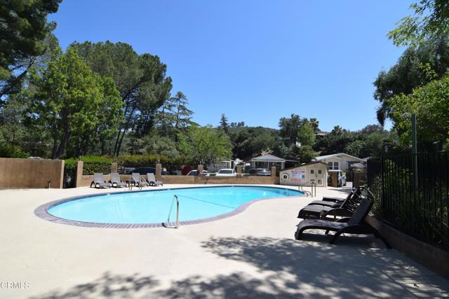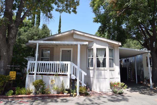 Brand new central air conditioning was just installed! And this is one of the newer more modern homes for sale in the park, having been built in 2004. This means vaulted ceilings and open rooms where the kitchen, dining and living rooms all come together. No carpet here! Hard flooring everywhere, creating the perfect space for those with carpet allergies, family members that spill stuff all the time, or pets that have an occasional indoor accident. With three bedrooms and two baths, the space is big enough for a family, yet feels small enough if it is just you. There's even a wood burning fire place! The home has been well maintained during its lifetime and is ready to move in without the need to paint anything - we took care of that for you. With the primary bedroom at the other end of the home, you not only will enjoy added privacy, but also partake of the panoramic view outside your window. This bedroom has direct access to the back porch, where you can soak in the view everyday while enjoying coffee or reading a favorite book. This all ages park features mature trees and landscaping, and the added amenities of a heated swimming pool, clubhouse with kitchen, billiards, and RV storage. And don't forget you are still close to many things, with easy access to the freeway and all the things Woodland Hills has to offer. Or forget it all and turn right on Topanga and head to the beach! Let's go!