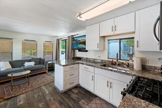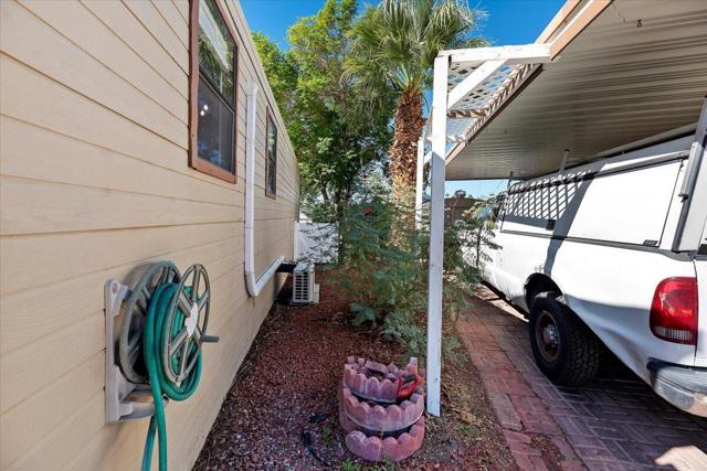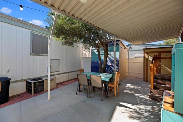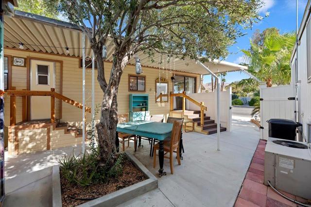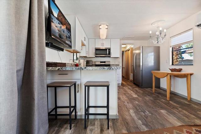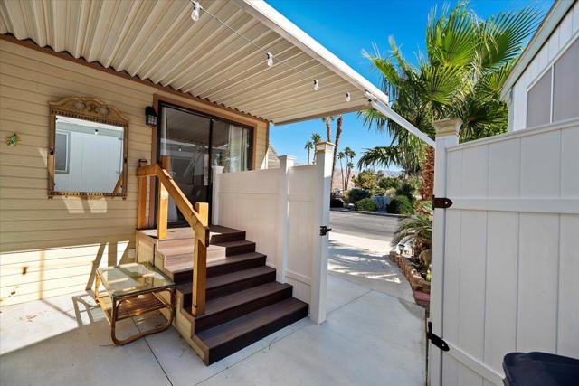 Welcome to Sky Valley Resort! This charming 1-bedroom, 1-bath 1988 home offers comfort and style with many recent upgrades, including a refreshed kitchen, new flooring, modern appliances, updated windows, and a convenient laundry area inside the shed structure. Private patio area and a nice large shed for storage. Only steps away from the East Club House.Enjoy resort-style living in this beautiful gated community featuring 13 natural hot mineral pools and spas, a fitness center, sauna, tennis, pickleball courts, cafe, chapel, and a dog park. Different activities are scheduled in the club house daily. Short Term Rentals are Allowed with Restrictions. This home is DMV Registered and doesn't have Property Taxes. Space rent is $920 per month, on a privately owned leased land.Experience the relaxing desert lifestyle and all the wonderful amenities Sky Valley Resort has to offer!
