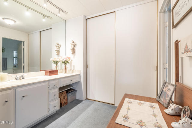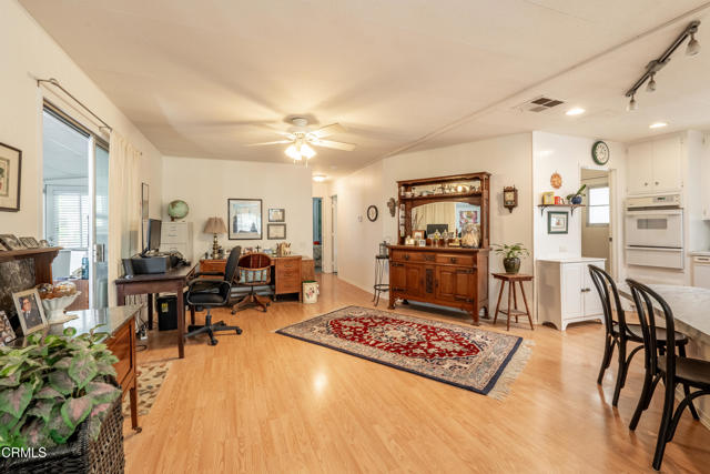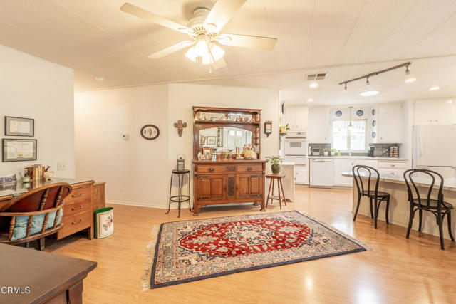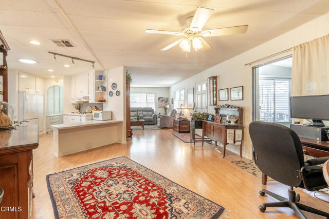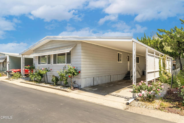 Two bedroom -plus third bedroom option , beautifully maintained home is located in the desirable Ojai Oaks Village All Age Park in Ojai. Offering an open concept floor plan, abundant storage, and thoughtful upgrades throughout.The light-filled living areas feature newer windows and durable laminate flooring throughout the common spaces. The kitchen has been updated with a stylish backsplash, modern countertops, recessed lighting, and a solar tube skylight for additional natural light.The guest bathroom offers bead board accents and a full tub/shower, while the spacious guest bedroom features a large step-in closet. The oversized primary suite includes multiple closets with built-in shelving and a private bathroom with a vanity area and a shower-only layout.An enclosed patio room provides flexible use as a potential third bedroom, home office, or creative space.Additional highlights include a workshop shed with electricity and windows, a 3-car carport, an updated front porch with Composite decking, and beautiful mountain views.Community amenities include a pool, spa/, clubhouse, and RV parking, providing a resort-like lifestyle right at home.