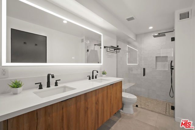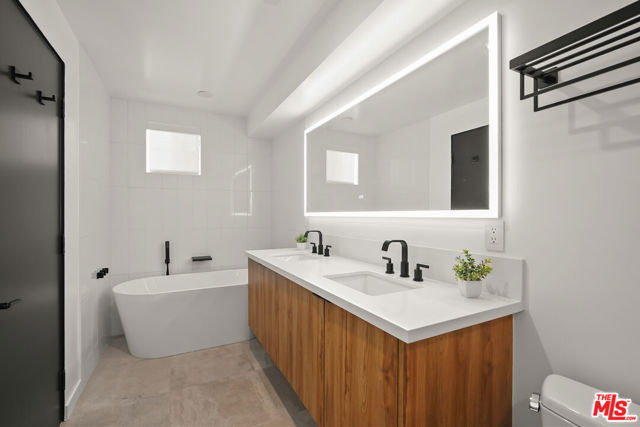 Welcome to the crown jewel of Melrose Hill. Built in 2023, this detached multi-level residence offers modern luxury and every high-end feature you could imagine. With no attached or shared walls, this turnkey residence epitomizes comfort and style, offering the perfect balance of privacy and convenience. The open-concept main level is an entertainer's dream, featuring high ceilings, an abundance of natural light, and expansive floor-to-ceiling folding glass doors that open onto an oversized balcony perfect for al fresco gatherings. The gourmet chef's kitchen is a culinary masterpiece, boasting sleek quartz countertops, high-end stainless steel appliances, generous bespoke cabinetry, and a spacious walk-in pantry. A stylish powder room is also conveniently located on this level for guests. This home features 3 spacious bedrooms and 4 bathrooms, with each bedroom appointed with its own en-suite bath. Upstairs, the primary suite offers a spacious walk-in closet and a spa-inspired bath with dual vanities and an oversized walk-in shower. The second bedroom suite is impressively large and includes its own walk-in closet and full bathroom essentially functioning as a second primary suite. The lower level includes a third bedroom suite, ideal for guests or a home office and provides direct access to a private two-car garage equipped with custom built-in storage and an EV charger. The crowning feature is the sprawling private rooftop deck, presenting unparalleled panoramic views of the iconic Hollywood Sign, Griffith Observatory, and the Downtown Los Angeles skyline perfect for entertaining under the stars. Perfectly positioned in the heart of LA's creative industry, you are just blocks away from Paramount Pictures, Netflix Headquarters, and Raleigh Studios. Immerse yourself in the dynamic culture and renowned culinary scene of Melrose Hill. Walk to the Hancock Park Larchmont Farmers Market, savor Italian classics at Osteria La Buca, or enjoy a world-class meal at the two-Michelin-starred Providence. The highly anticipated Echelon Studios project just a block away, set to complete next year.