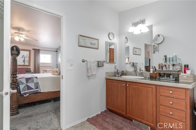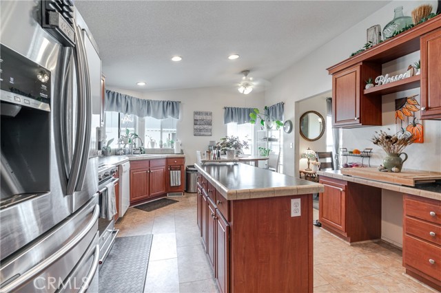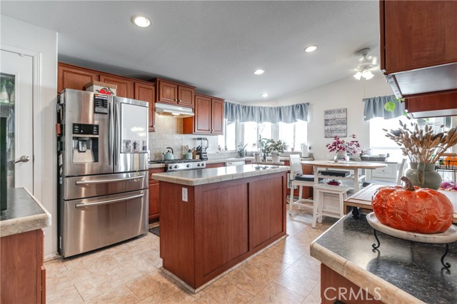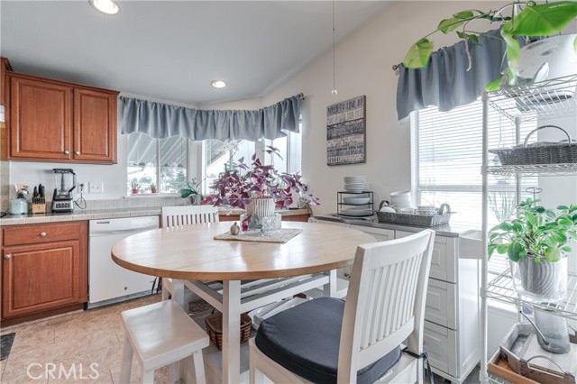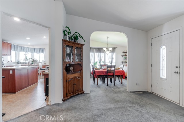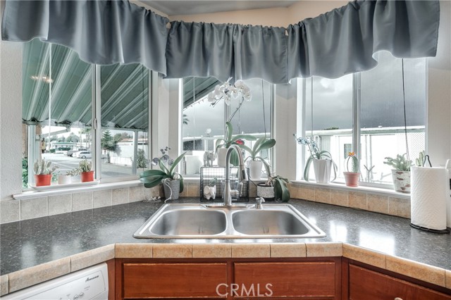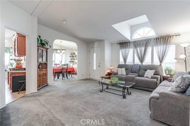 This newer manufactured home, built in 2006, is located in the desirable Daleview Estates 55 years+ senior park. From the front brick-detailed walkway and pebble-stone garden, this handsome manufactured home offers modern comfort and effortless convenience. Step through the welcoming front door to a light and bright living room with a row of windows, vaulted ceiling, decorative half-moon ceiling-level window and an entertainment cubby area with recessed lighting. The inviting formal dining room offers a north-facing bay window and pendant light fixture. The large gourmet kitchen is a chef's delight with extensive cabinet and countertop space, large center island, built-in sideboard, double stainless steel sink at the bay window with mountain views, stainless steel stove and refrigerator, pantry, and a cozy eating area. The home offers a spacious 1,574 square feet of living space, 2 bedrooms, 2 bathrooms, and a den that could be used as a third bedroom. The ensuite primary bedroom is a serene delight, with direct access to a side deck for relaxing in a private space with calming ambient night lighting. The oversized primary bathroom offers a walk-in shower, large storage cabinet, linen closet and dressing area. Other amenities include a well-designed floor plan, separate laundry room with washer and dryer, central air and heat, ceiling fans and recessed lighting. The exterior space includes 2-car carport parking and 2 storage sheds. The park has a community pool and spa, clubhouse, plenty of guest parking, a walking trail with sitting areas among lush gardens, and a covered barbecue area with picnic tables for outside entertaining.