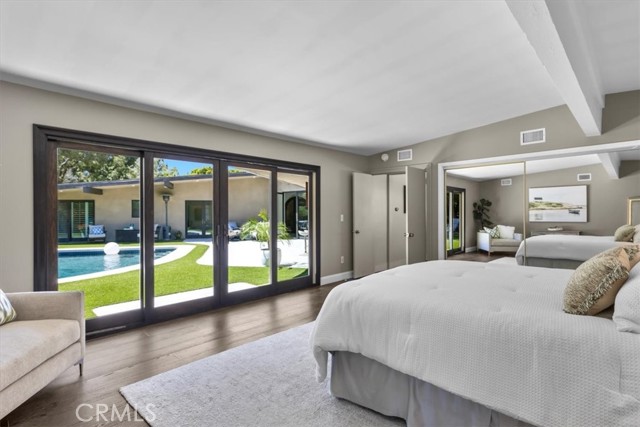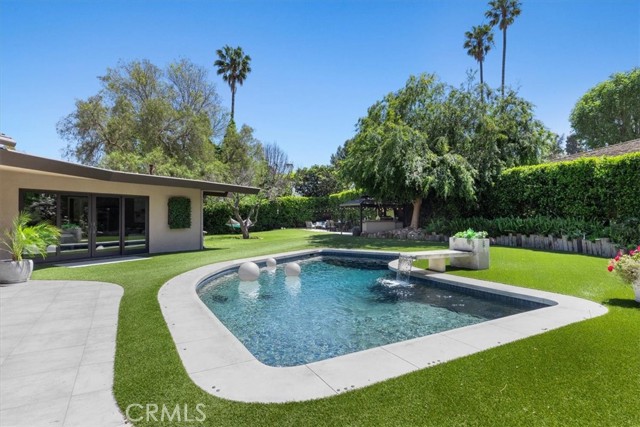 Nestled at the end of one of the most private streets in Rolling Hills Estates, this luxurious half acre lot, 4-bedroom, 4.5 baths residence offers the ultimate resort and comfort living one can ask for. The property features a courtyard leading to a spacious main house, complimented by an attached, separate large 1 bedroom guest house with large living room and bathroom with private access. The interior showcases an open floor plan designed for seamless resort like indoor-outdoor living, with a remodeled gourmet kitchen equipped with top of the line Sub Zero, Thermador and MIELE steam appliances. Dual sinks, plus 2 tankless water heaters. Each bedroom is a private en suite, providing retreat-like experience. Outside, the expansive backyard is an entertainers paradise, featuring a sparking pool, an outdoor kitchen, a pickle ball court, a putting green, walk up outdoor bar and outdoor recessed lighting. soothing waterfall feature while you relax in the double hammock under the shade of mature trees. Backyard leads to the horse trails, with a perfect path to Ernie Howlett Park. 3 car garage, with room for 9 cars in circular driveway. whether your hosting guests, or enjoying a quiet evening at home, this property delivers unmatched luxury, convenience and perfect year round weather, complete with an office and a well appointed laundry room. Close to award winning Palos Verdes schools, Ocean, best dining and shopping.