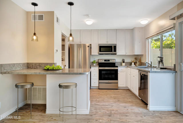 Welcome home to this beautifully updated end-unit townhome in the desirable Wildwood community. Bright, inviting, and completely move-in ready, this home has been upgraded throughout with quality finishes and thoughtful updates. Enjoy smooth ceilings, fresh paint, modern flooring, and dual-pane windows throughout.The stylish kitchen features quartz countertops, newer cabinetry, and stainless steel appliances--including a refrigerator, microwave, dishwasher, washer, and dryer. Additional upgrades and amenities include a newer HVAC system, Central A/C, convenient indoor laundry room, and a total of two assigned parking spaces. Perfectly situated in a desirable location within the community, this unit offers easy access to the community pool, greenbelts, and guest parking. It's also located a short distance away from many nearby parks, playgrounds, shopping, and fwy access. This is the one you've been waiting for! Submit on Pets.