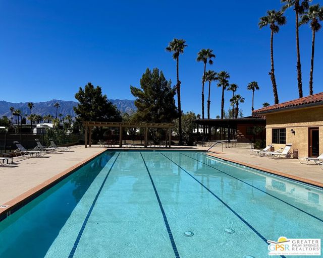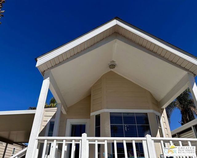 Welcome to Desert Shadows RV Resort Park! This furnished 2-bedroom, 1-bath turnkey mobile home offers comfort, space and convenience in a desirable Cathedral City location. Step inside to a spacious floor plan featuring raised ceilings in the living area, creating an open and airy feel. The galley kitchen comes fully equipped with an oven/range, refrigerator, dishwasher, microwave along with cooking and eating essentials. The living room with soaring ceilings opens directly to the kitchen and bedroom loft above for that perfect night's sleep. The second bedroom, currently used as an office/storage area, includes a Murphy bed, desk and plenty of closet space. The bathroom showcases a round tempered glass vessel sink and shower. Outside features an entry deck for your morning coffee with stunning mountain views. The covered carport for one automobile also highlights a dining area right next to the outdoor grill and further back is a storage shed for keepsakes along with a citrus tree and another little patio area for sunbathing and hanging out. A laundry facility is conveniently located across the street. Each of the 460 individually owned HOA lots has a metered 50-amp electric service and includes water, sewer, trash/recycling, Spectrum cable and High-Speed Internet. The resort is a gated senior 55 plus community and includes a thriving pickleball community, tennis courts, 6 swimming pools including a large lap pool, a fully equipped fitness center, a world-class indoor shuffleboard pavilion, wood shop, two large clubhouses and so much more. Don't miss this chance to own an affordable desert escape with unbeatable convenience! Call or text today for a private tour.