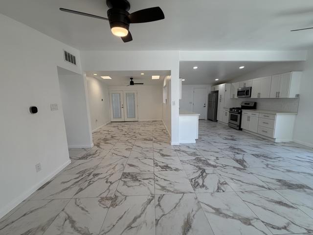Welcome to this beautifully remodeled and move-in-ready 3-bedroom, 2-bath home offering modern upgrades and comfortable living in one of Desert Hot Springs' most convenient locations. This home features a fully renovated interior with new appliances, a brand-new A/C system, updated flooring, recessed lighting, and an open-concept layout that seamlessly connects the kitchen, dining, and living areas. A standout feature of this property is the fully remodeled garage, which has been converted into a bonus room complete with tile flooring, a mini-split A/C system, a closet--ideal for a home office, gym, guest space, or additional living area. The laundry area is located in its own designated section, providing added convenience and functionality. Outside, you'll enjoy a low-maintenance yard and a peaceful setting with easy access to local amenities. The home is located just minutes from shopping centers, including Stater Bros, dining options, and commuter routes, offering both comfort and convenience. This move-in-ready home is the perfect blend of modern finishes, flexible living space, and a great location--ready for its next resident to enjoy.