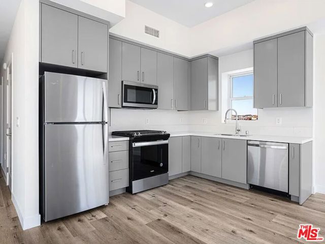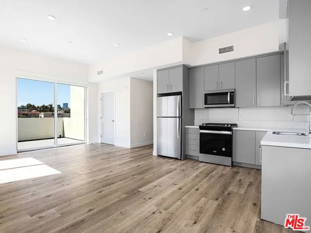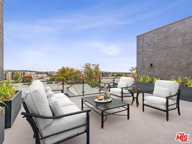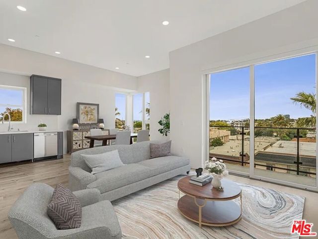 Top-floor living at The Jade of Palms. This modern penthouse features high ceilings, big windows, and a private terrace with city views. The open layout includes a sleek kitchen with stainless steel appliances, in-unit washer and dryer, and two full bathrooms. The building offers secure entry, gated parking with EV charging, and a rooftop deck perfect for relaxing or entertaining. Close to shops, restaurants, and transit, it's an easy place to settle into Westside living.