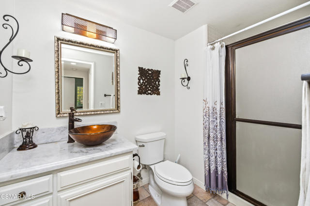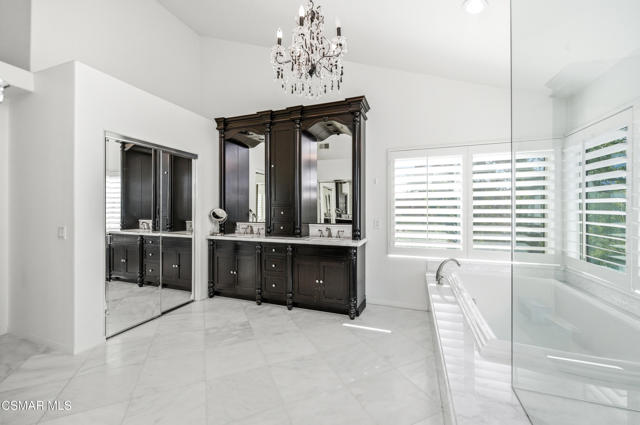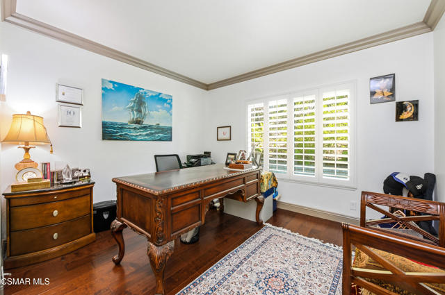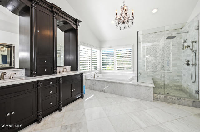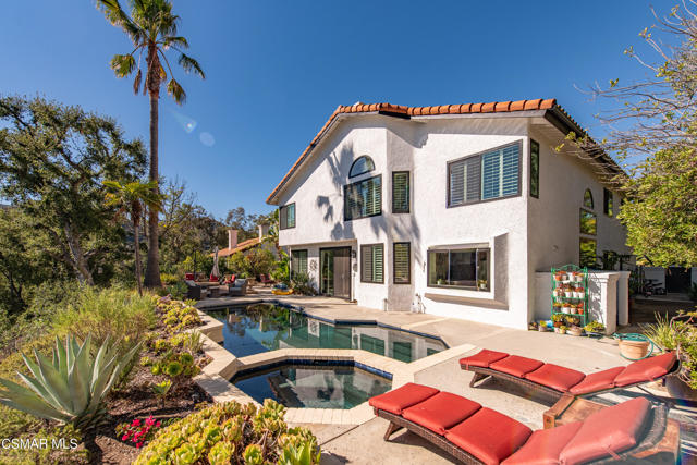 Welcome to this exceptional two-story Westlake Village home offering space, style, and resort-style living. Step inside to soaring ceilings, a grand staircase, and an elegant formal living room with a cozy fireplace. The formal dining room is perfect for gatherings, while the light-filled kitchen features granite countertops, stainless steel appliances, and a charming breakfast nook overlooking the backyard. The adjacent family room opens seamlessly to the outdoor patio and pool area. A convenient downstairs bedroom and full bath make an ideal guest suite or home office, plus a laundry area with direct access to the three-car garage. Upstairs, the spacious primary suite feels like a retreat with high ceilings, a sitting area, abundant closet space, and a luxurious bath with dual vanities, soaking tub, and separate shower. Two additional bedrooms, a full bath, and a large flex room complete the upper level. Outside, enjoy a sparkling pool, relaxing spa, and breathtaking hillside views--perfect for entertaining or unwinding at home. Located in the highly desirable Three Springs neighborhood close to parks, trails, and top-rated schools.