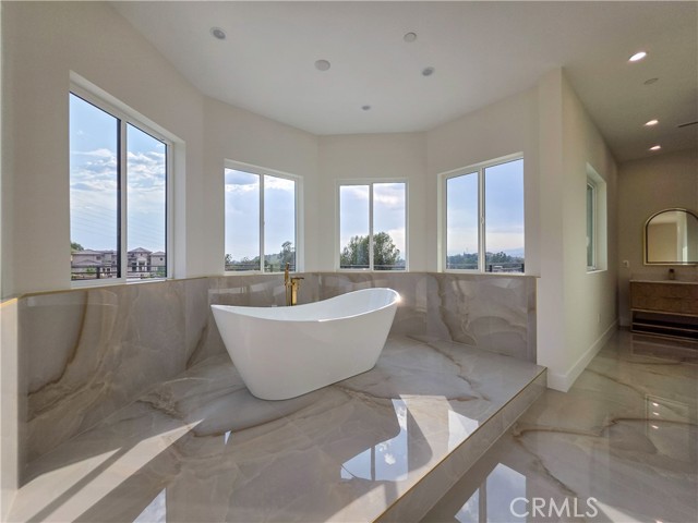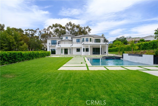 Modern Newly Built Shadow Hills Estate with Heated Saltwater Pool, Jacuzzi & Mini Golf Course. Stunning newly built 5,650 sq.ft. luxury estate on a 40,000 SF lot in the prestigious Shadow Hills community. This two-story residence offers 5 bedrooms and 6.5 baths, featuring a grand primary suite with spa-style bath, walk-in area (closets to be completed upon lease signing), and private balcony with mountain views. The open-concept design boasts soaring ceilings, abundant natural light, and a chef’s kitchen with professional-grade appliances and an oversized island. Enjoy resort-style living with a heated saltwater pool, Jacuzzi, and mini Golf Course, surrounded by beautifully landscaped grounds. Additional highlights include a 3-car garage, large gated driveway, and proximity to equestrian trails, hiking, and nature paths. An exceptional lease opportunity combining privacy, comfort and luxury.