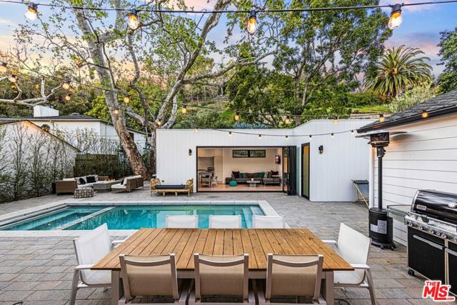 **FURNISHED Mid to Long-Term Rental** Modern luxury living in the Hollywood Hills. Completed in 2021 and originally built for the owner, this designer residence showcases top-tier craftsmanship, furnishings, and smart-home technology. The main house features 2 bedrooms (King/Queen) with en-suite baths finished in handmade Moroccan zellige tile, walk-in closets, and a guest powder room. The open-concept layout offers abundant natural light, motorized window coverings, a gas fireplace, and a chef's kitchen with Thermador appliances, Carrara marble countertops, and a 70-bottle dual-zone wine fridge. The converted garage serves as a bonus room with HVAC, laundry, gym area, office, and queen sleeper sofa. The pool house (ADU) includes a full Bosch kitchen, living area, bedroom with en-suite bath, and pool-access shower. Outdoor entertaining features over 2,000 SF of patio space with dining for 10, a fire-pit lounge, outdoor bar, heated saltwater pool with oversized spa, automatic cover, and custom lighting. Additional highlights include gated driveway parking, ample street parking, and proximity to Franklin Village and Bronson Canyon trailhead. Tenant pays LADWP, SoCalGas, WiFi, and bi-weekly cleaning. Owner covers gardener and pool service. No smoking. Pricing varies based on lease term, inquire for desired term and dates as well as rentals for events, productions, or a discount for renting the main house only (no ADU).