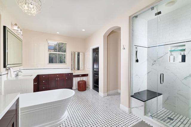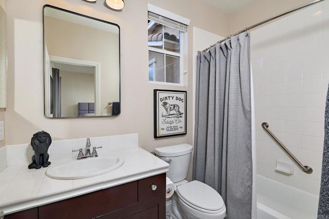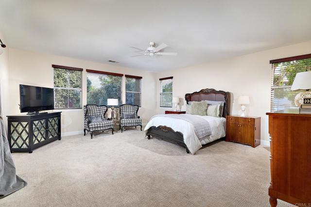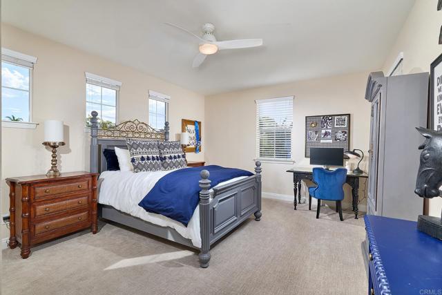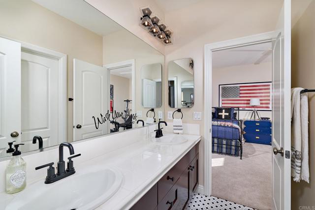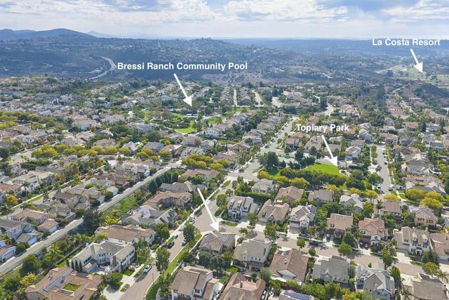 Located on a large, private corner lot, just a short stroll from the vibrant Bressi Ranch community pool, clubhouse, charming parks, and neighborhood shopping and dining at Bressi Village, this home offers quick access to Trader Joe’s, Sprouts, Bird Rock Coffee, and so much more. From the moment you arrive, you’ll notice the pride of ownership and thoughtful craftsmanship at every turn. Step inside to a freshly painted interior, where new hardwood flooring downstairs and plush new carpet and tile upstairs create a seamless blend of warmth, comfort, and sophistication. The flowing floor plan offers comfortable spaces to work, relax, and entertain. A versatile downstairs bedroom is perfect for an office, gym, playroom, or guest suite. At the top of the stairs, dual built-in workstations provide the ideal place for kids to tackle homework. Two oversized front bedrooms share a convenient Jack & Jill bath, while the spacious middle bedroom enjoys its own ensuite offering comfort and privacy for family or guests. At the heart of the home, the chef inspired kitchen has been completely remodeled with granite countertops, a mosaic stone backsplash, refinished cabinetry, and a new stainless-steel dishwasher, making it the perfect space to gather, cook, and entertain. Each bathroom has been refreshed with modern tile and updated fixtures, while the primary retreat feels like a five star spa complete with a freestanding soaking tub, custom mosaic marble floors, and a remodeled shower. Every detail reflects impeccable taste and design. Step outside to your own private retreat, surrounded by mature trees and thoughtfully designed, drought tolerant landscaping. The artificial turf keeps the space effortlessly pristine, while the covered patio invites you to gather for weekend barbecues or quiet evenings under the stars. Smart features include a fully paid 30-panel solar system, new light fixtures, new LED low-energy lighting, a new HVAC system, Insta-hot water heater, water softener, smart garage door openers, NEST smart thermostat, and new AC and heat. Every element of this $250,000 designer renovation was chosen with intention resulting in a home that feels both elevated and inviting. The spacious three car garage includes a 220V outlet for EV charging and offers plenty of room for all your weekend toys, hobbies, and storage needs. From bikes and surfboards to holiday decorations or even a golf cart, you’ll have ample space to stay organized while enjoying the convenience of generous parking. Just minutes away are award-winning Carlsbad schools, Pacific Ridge School, and world-class destinations including La Costa Resort, Park Hyatt Aviara Resort, and the pristine Carlsbad beaches.