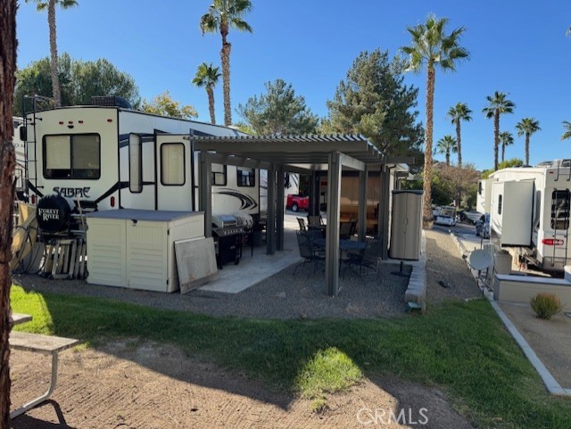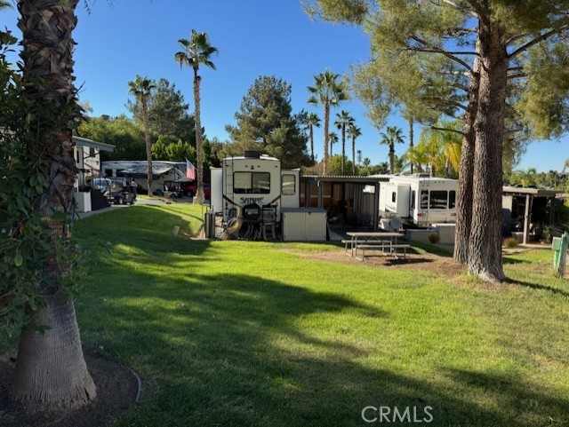 Large Allumawood Cover, raised concrete and large back yard in a cul-de-sac. Great private lot with nobody behind you lots of room for your extras. Rancho California RV Resort provides amenities such as a 14 hole Executive PAR 3 Golf Course (no fees for owners), 5 Pools/Jacuzzis, Tennis courts, Pickleball courts, Dog park, Club house, hiking trails, Horseshoe lawn, onsite grocery market and restaurant. The resort is guard gated with no age restrictions. Monthly HOA fee includes "unlimited" use of the golf course, amenities, trash pickup at lot, water/sewer and common area maintenance. Financing is available!