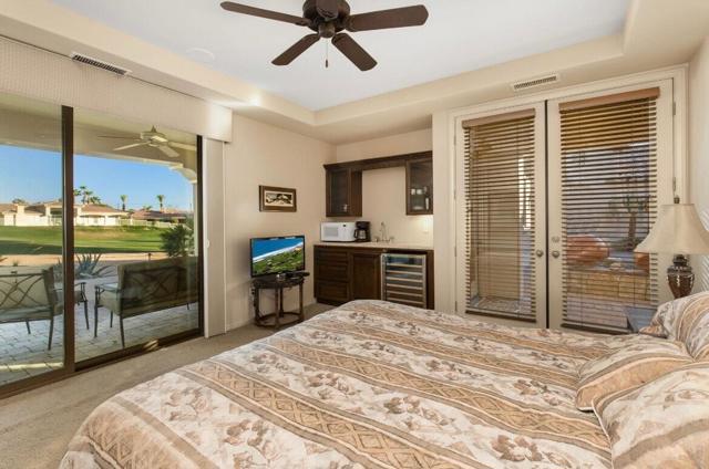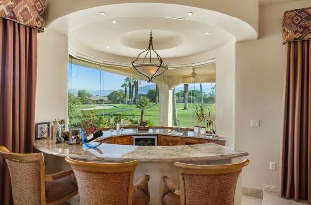 Welcome to Castle Harbor, an exclusive guard-gated enclave within the renowned Bermuda Dunes Country Club--home to just 31 custom residences offering privacy, prestige, and some of the best views in the community. This Tuscan-inspired estate captures the essence of desert luxury living, perfectly positioned on a premier corner lot overlooking the par-3 7th hole of the Classic Course with sweeping vistas of the Santa Rosa Mountains.Step through the handsome wooden gate into a serene courtyard retreat featuring a Pebble Tec pool and spa with cascading waterfalls, a granite outdoor kitchen with built-in BBQ and mini fridge, and a cozy fireplace seating area--ideal for entertaining under the stars. A long paver driveway leads to the three-car garage and provides a grand first impression of this meticulously designed residence.Inside, walls of glass in the expansive great room showcase panoramic golf and mountain views, complemented by a stunning stone fireplace and a dramatic entertainer's bar with wraparound windows. The gourmet kitchen is a chef's dream with GE Monogram stainless-steel appliances, granite countertops, a breakfast bar peninsula, walk-in pantry, and abundant cabinetry. A formal dining room and breakfast nook--each with gorgeous views--complete the perfect setting for gatherings large or small.The luxurious primary suite offers a tranquil sitting area with fireplace, dual cedar-lined walk-in closets, and a split double bath with separate vanities, water closets (one with bidet), and a private fitness or dressing room. Two additional guest bedrooms--one currently used as an office--are located within the main home, while a detached private casita with kitchenette provides ideal accommodations for visitors.Additional highlights include high ceilings, custom built-ins, a large laundry room with dog-wash station, and IID electric service for lower energy costs. Optional memberships are available at Bermuda Dunes Country Club, though not required, allowing flexibility in lifestyle.Conveniently located near the Acrisure Arena, world-class golf, tennis, pickleball, shopping, and dining--this stunning Castle Harbor estate offers the best of desert living with unmatched views, craftsmanship, and comfort.
